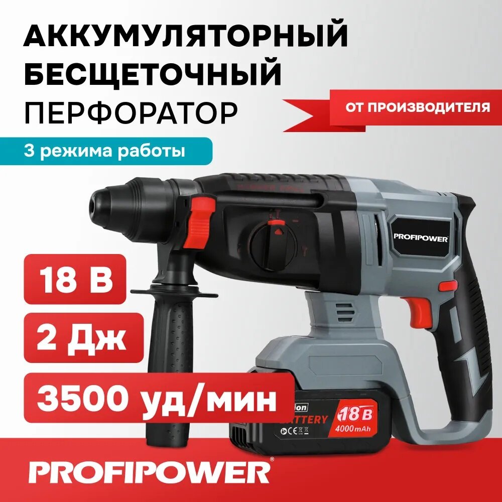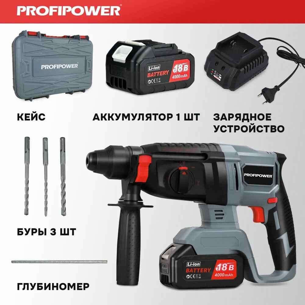 Перфоратор беcщеточный ProfiPower MKDHR-18V (Li-ion-1шт, 4.0Ач, 1,9Дж, 3 режима, 3 бура,З/У, в кейсе) интересное: