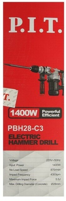 Перфоратор P.I.T. PBH28-C3 в кейсе, SDS+, 1400 Вт, 5.5 Дж, 900 об/мин, 4300 уд/мин, 3 режима интересное: