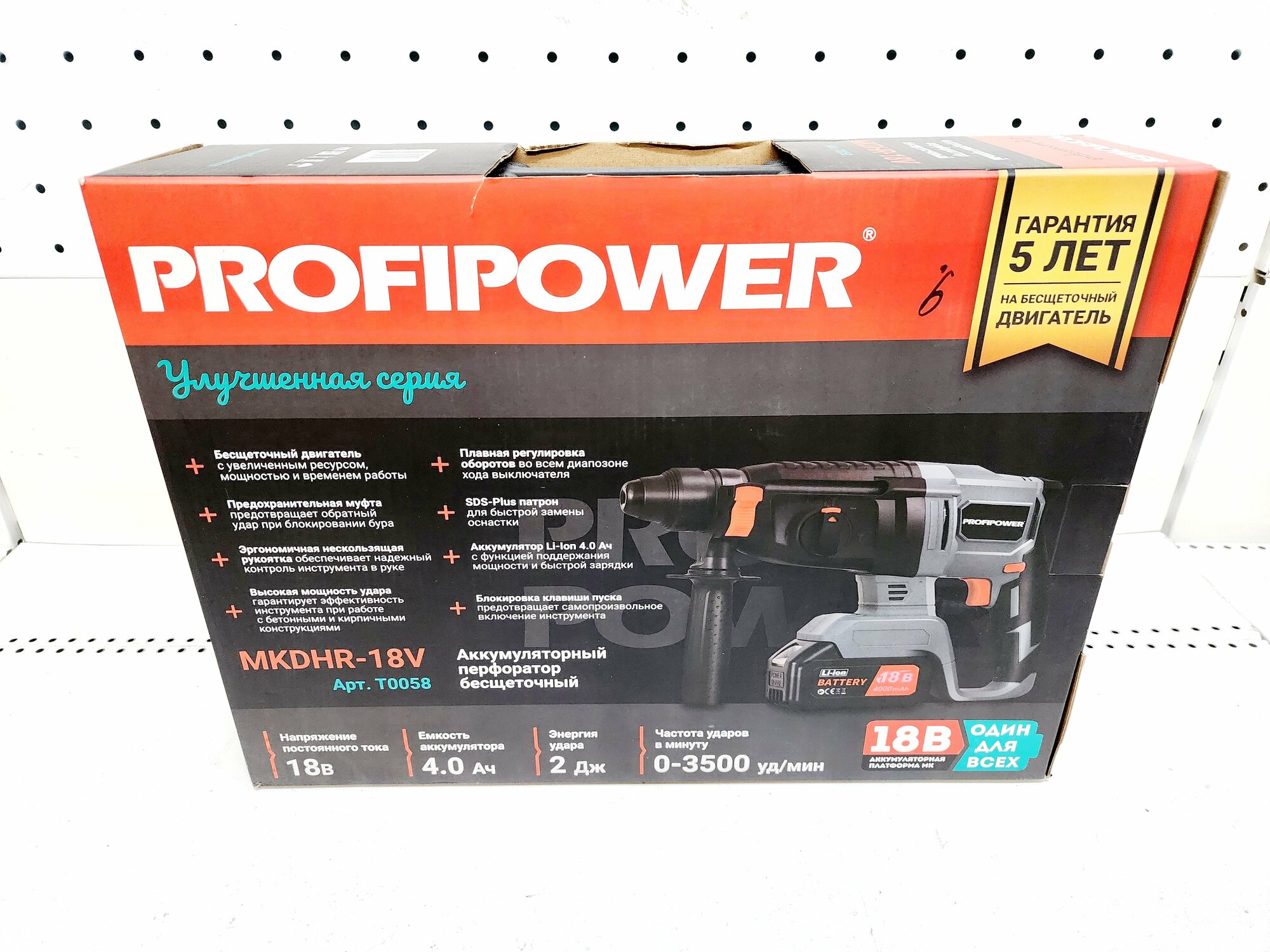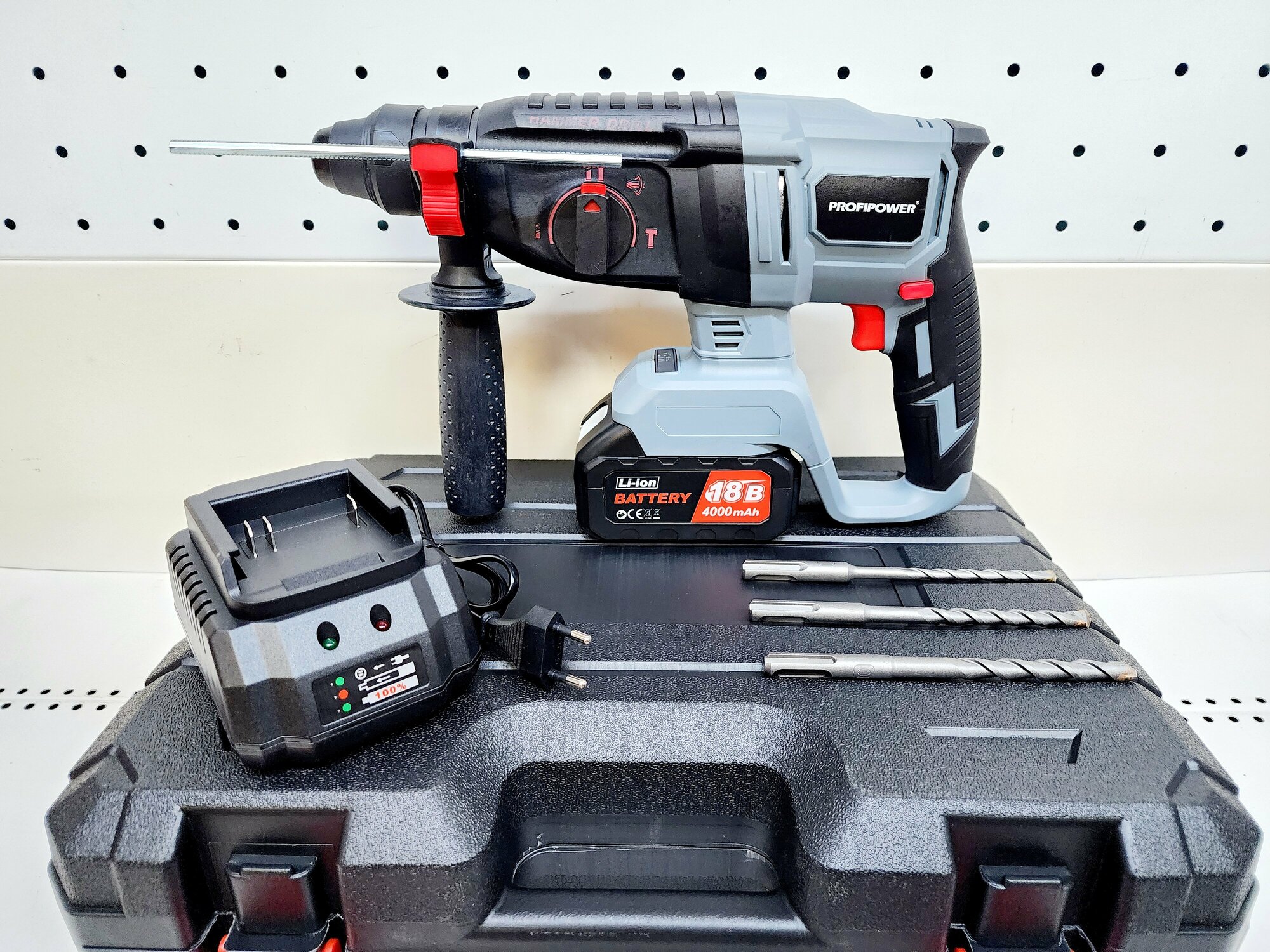 Перфоратор беcщеточный ProfiPower DWDHR-18V(Li-ion-1шт, 4.0Ач, 2,2Дж, 2 режима, З/У, кейс)