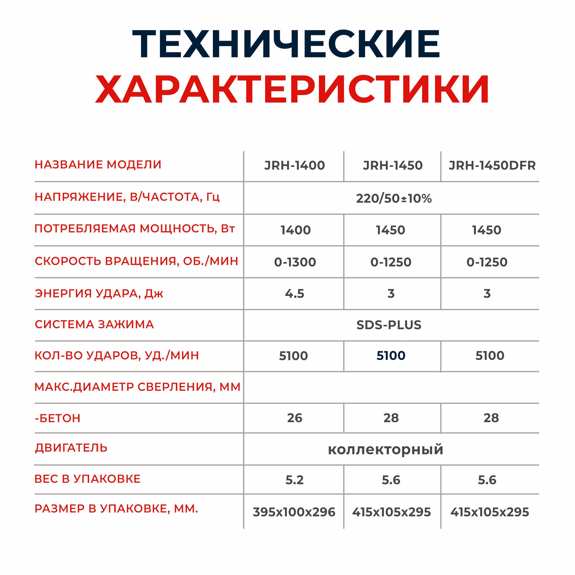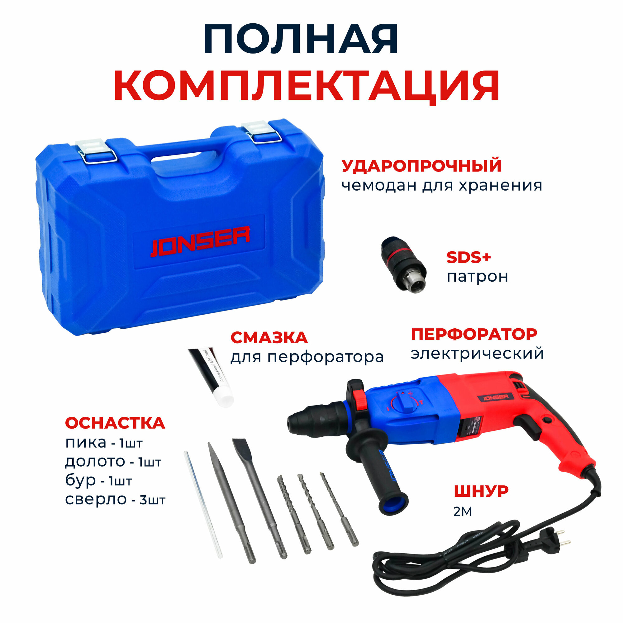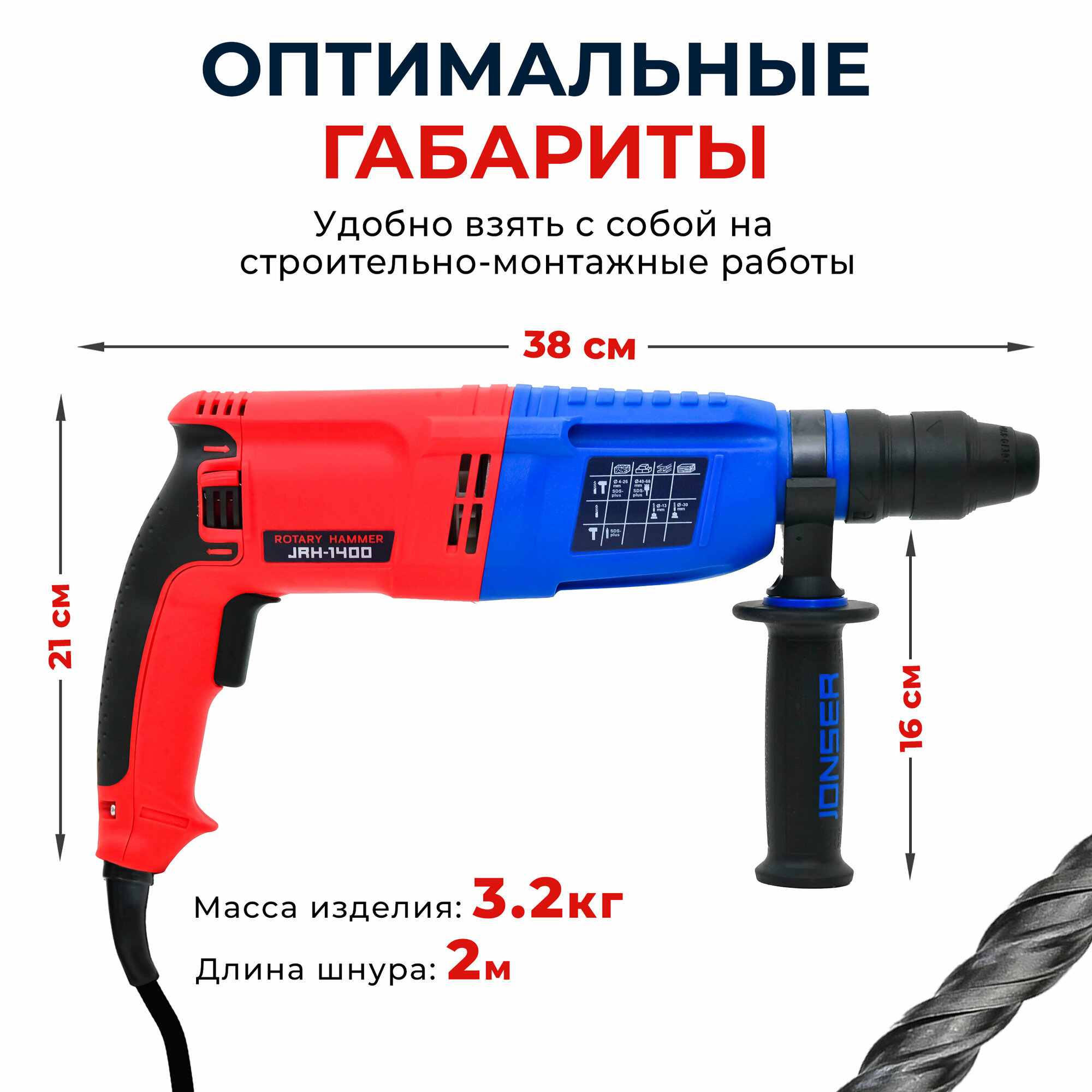 Перфоратор электрический сетевой с кейсом Jonser JRH-1400 интересное: