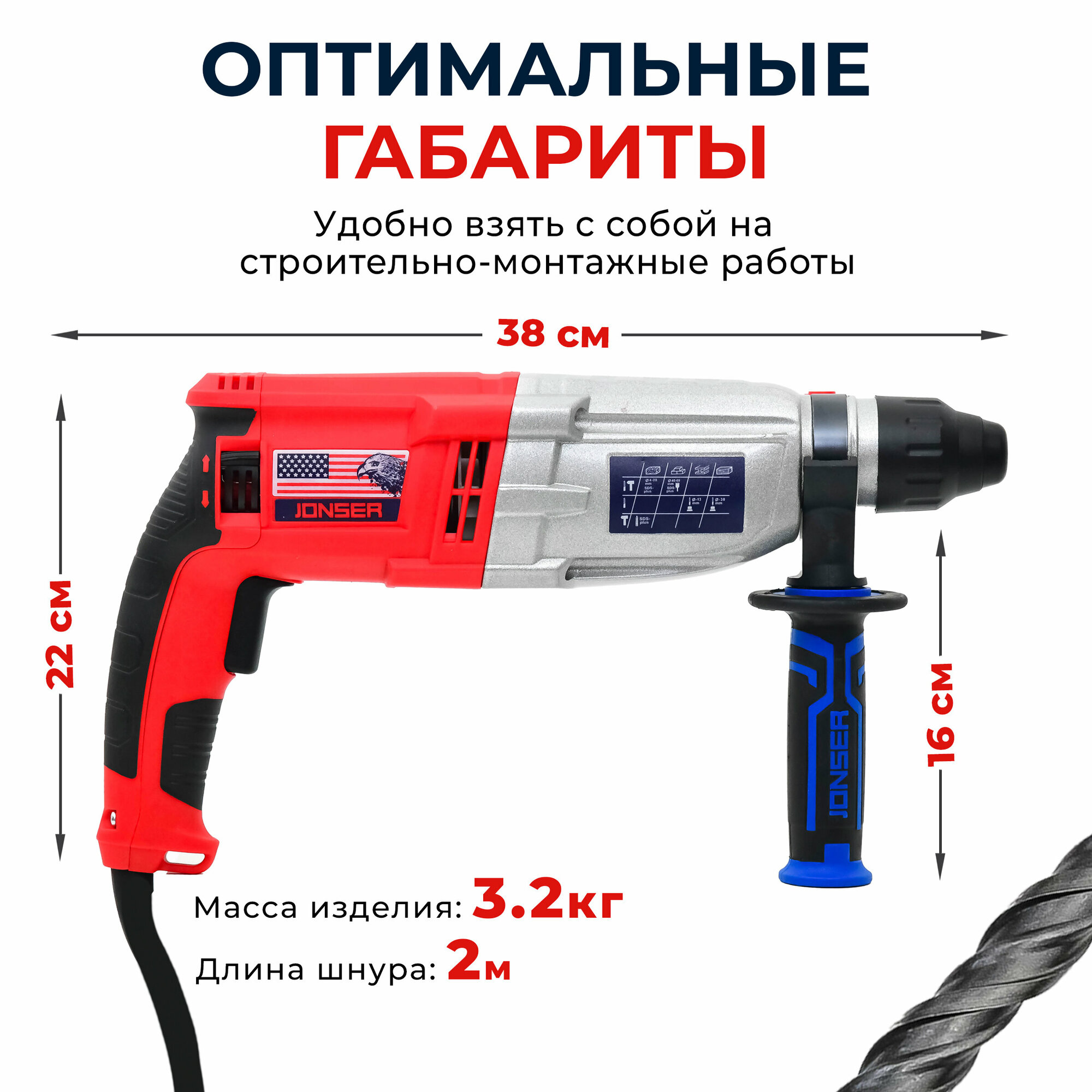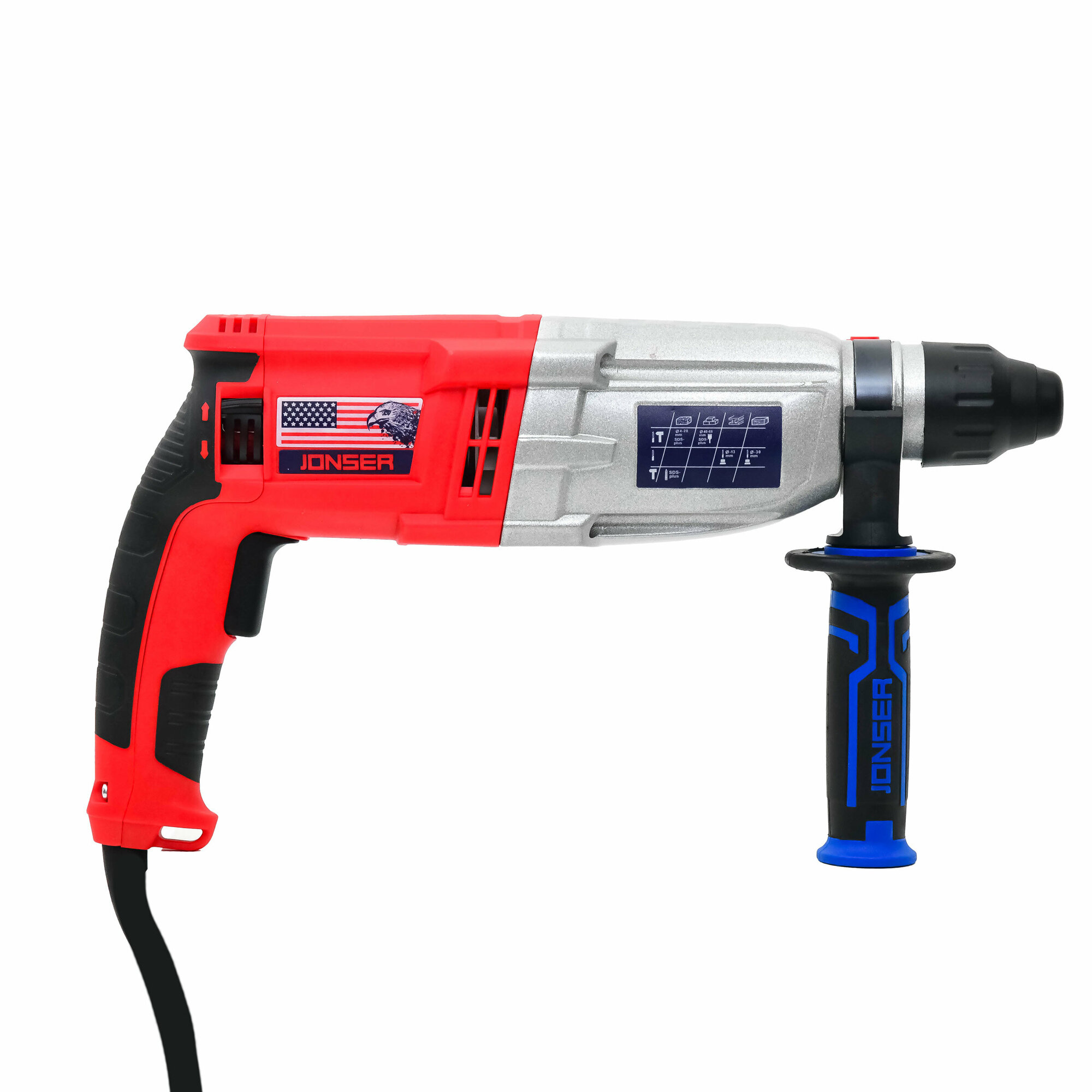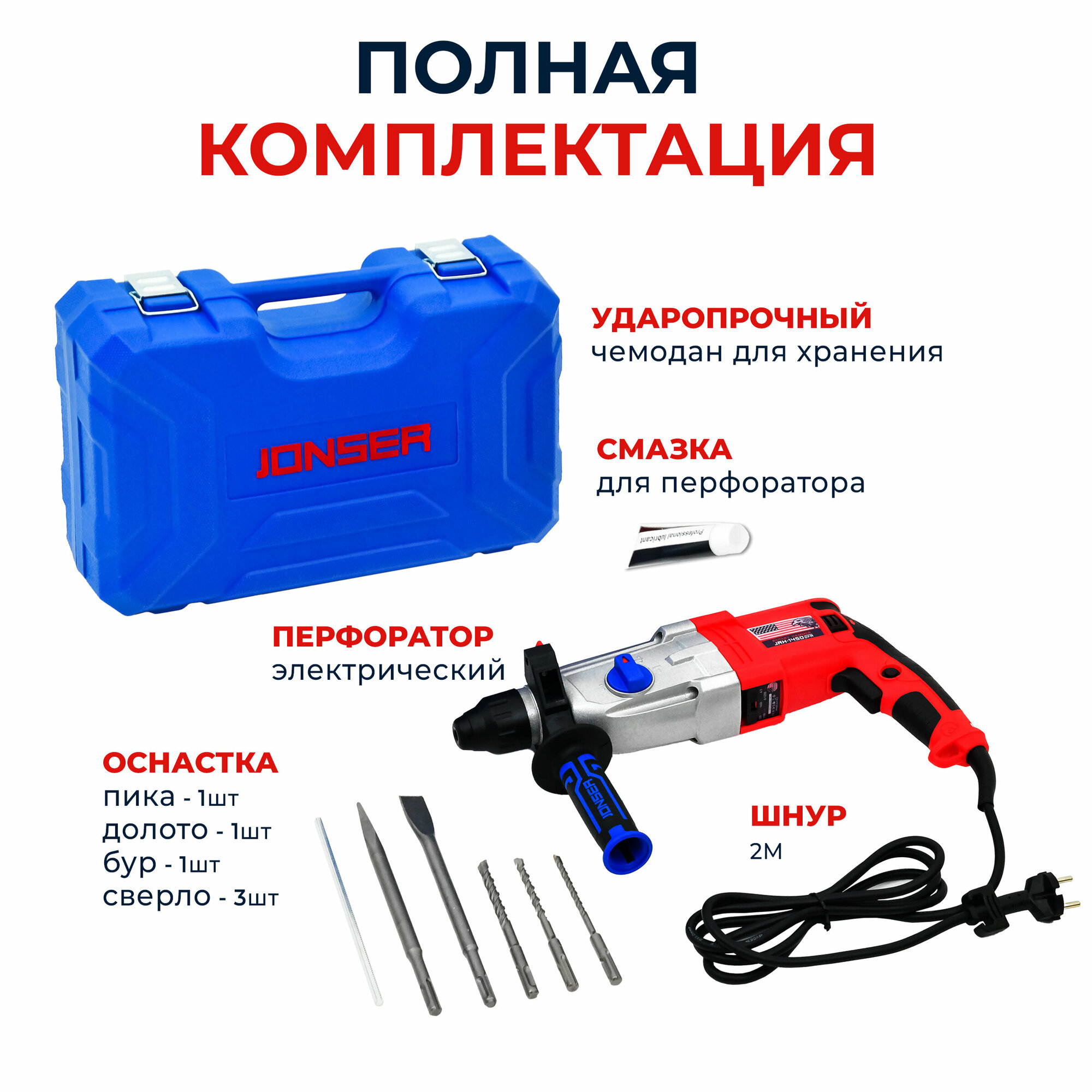 Перфоратор электрический сетевой с кейсом Jonser JRH-1450DFR интересное: