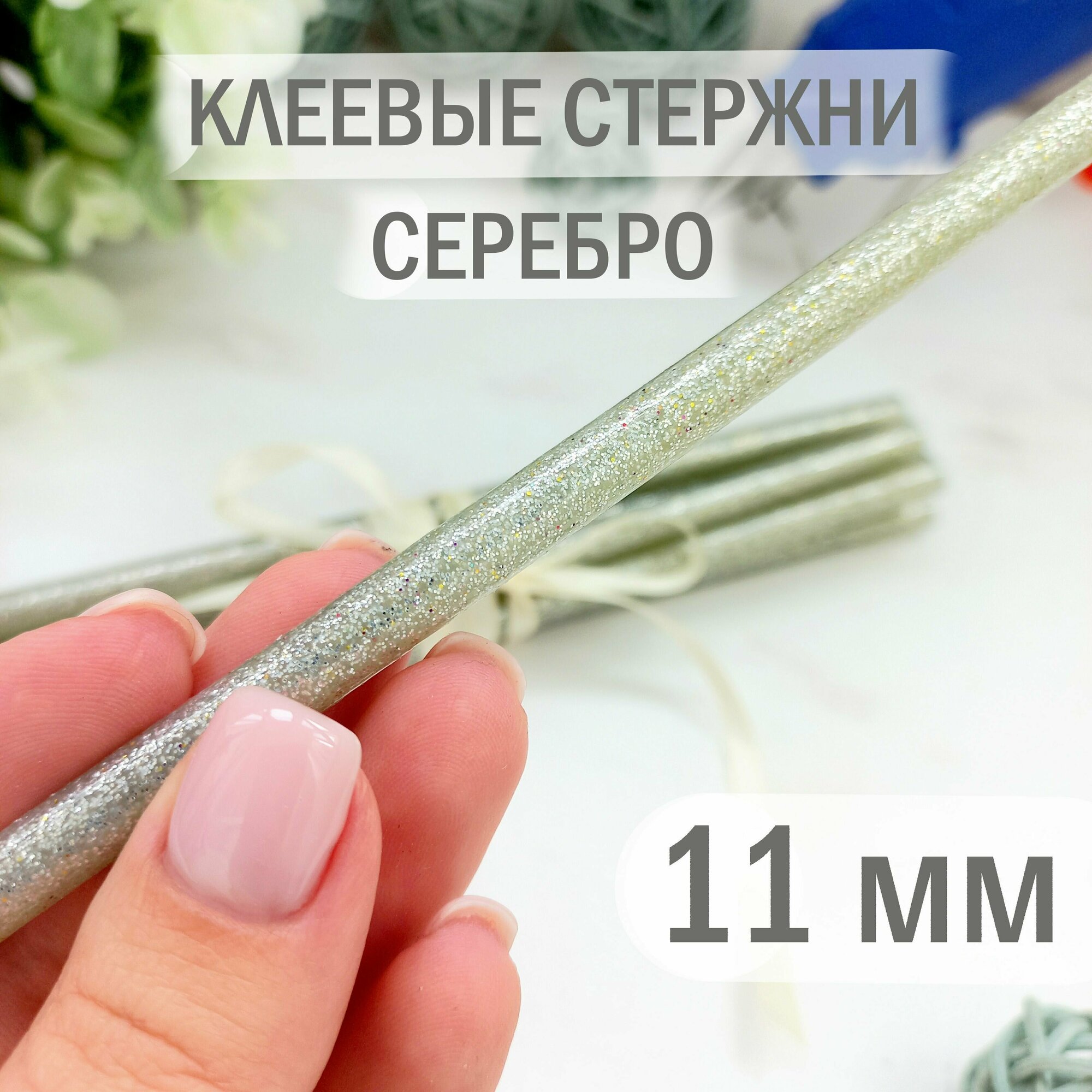 Купить Клеевые стержни с блестками серебро 11 мм, клей для клеевого пистолета блестящий