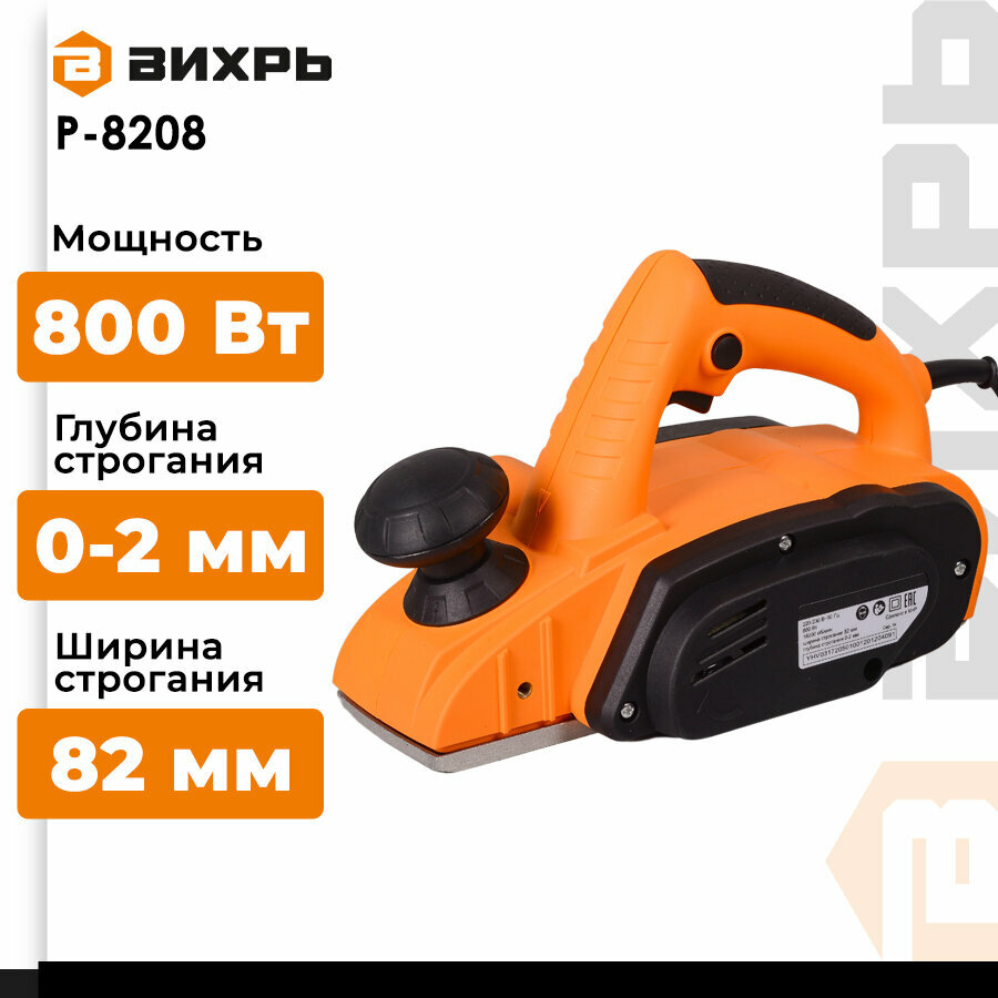Купить Рубанок электрический Вихрь Р-8208 (800 Вт, 16000 об/мин, глубина - 2 мм, ширина - 82 мм, 2.6 кг)