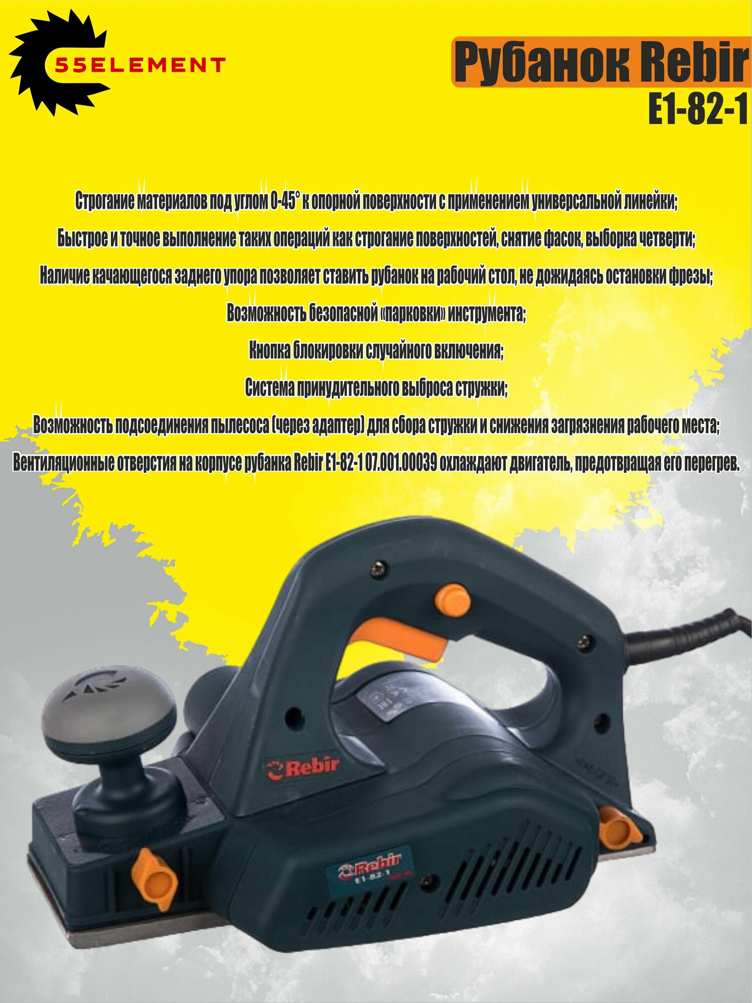 Рубанок Е1-82-1, 900 Вт, 82 мм, (кор.) Rebir (4 шт./уп.) интересное: