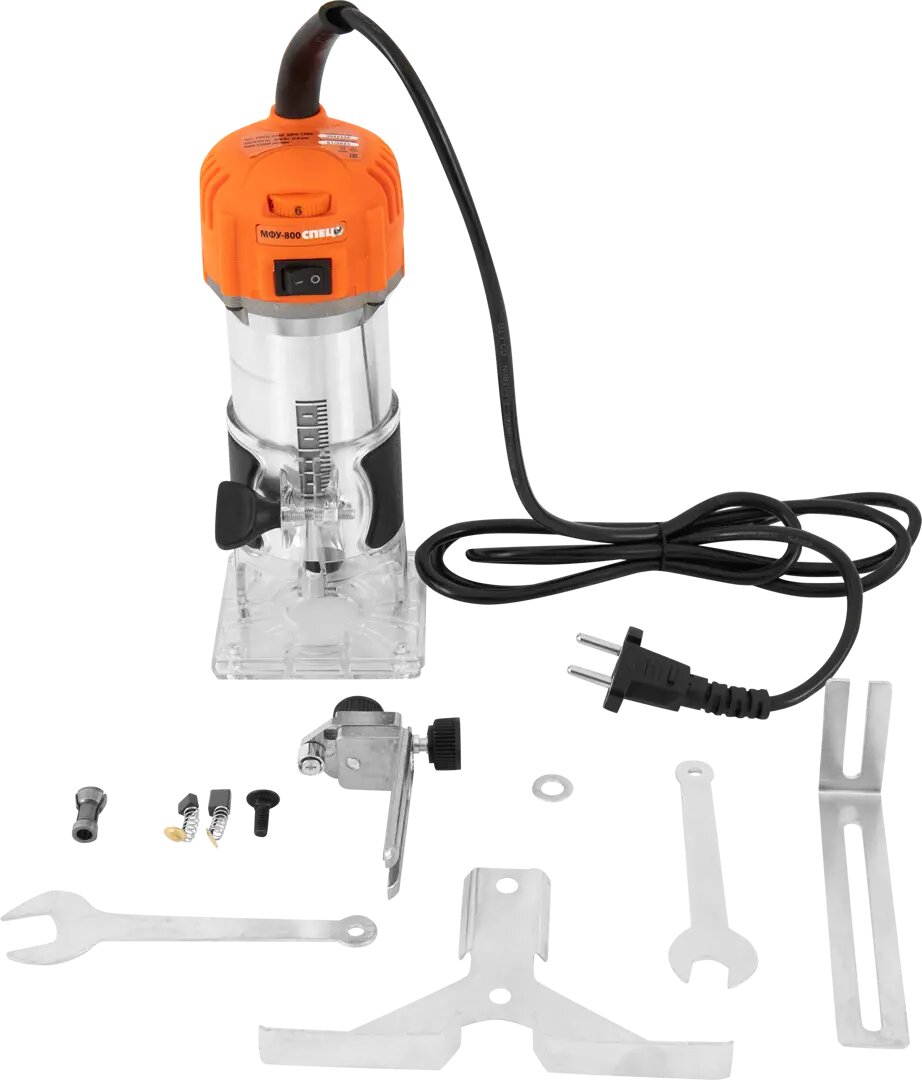 Купить Спец Фрезер кромочный МФУ-800, 800Вт,10000-30000об/мин, 6-8мм цанга,параллел.напр,кабель 1,8м,цв.коробка СПЕЦ-3443