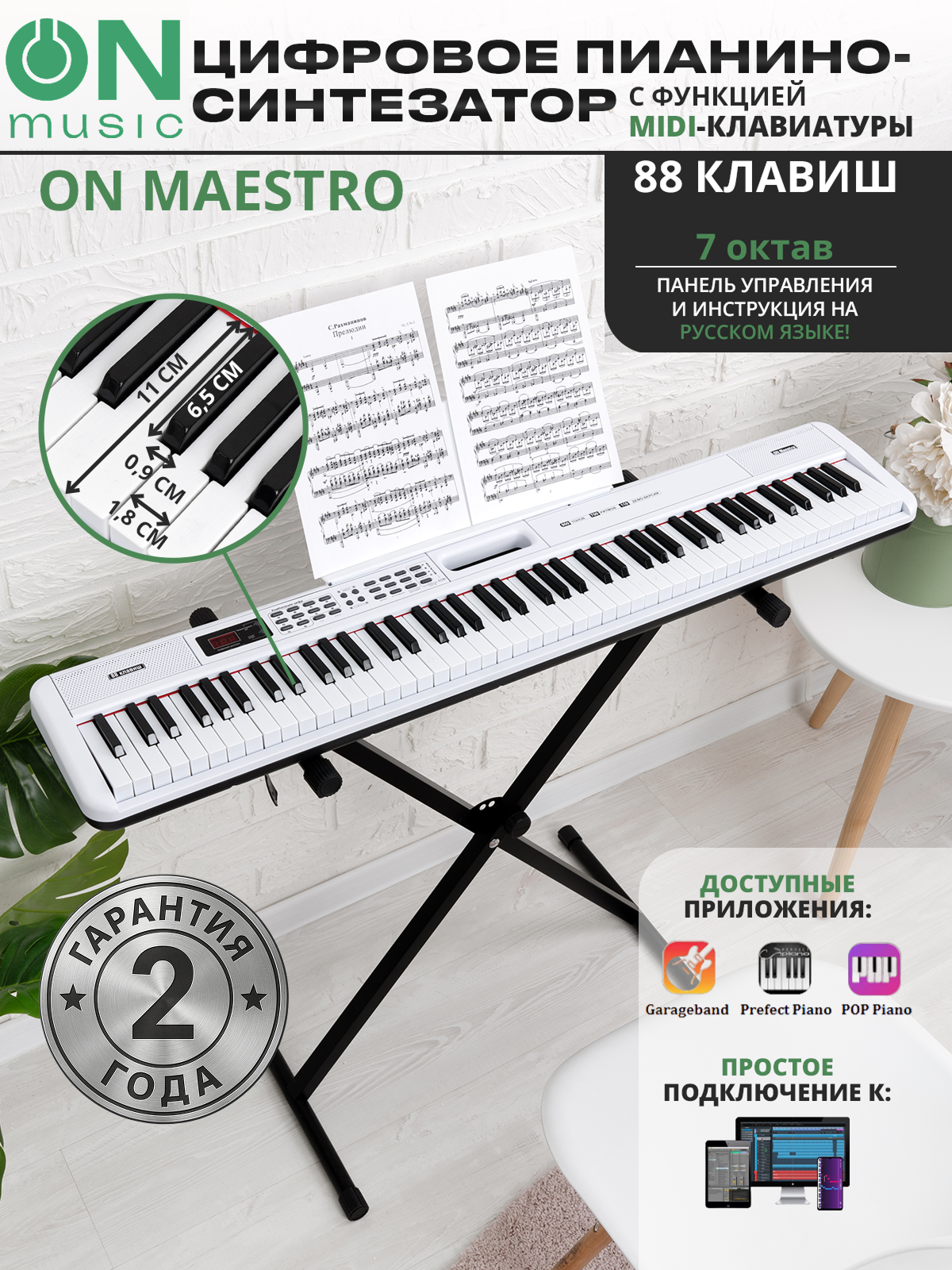 Цифровое пианино-синтезатор ON Maestro, 88 клавиш (компактные), белый интересное: