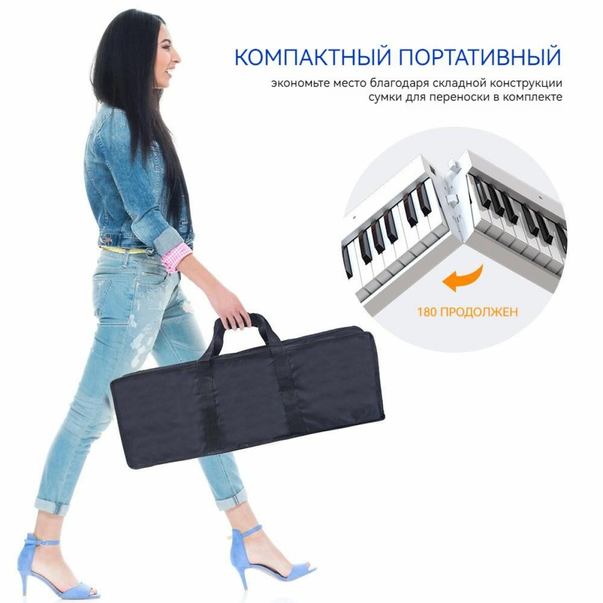 Черное складное цифровое пианино, 88 клавиш