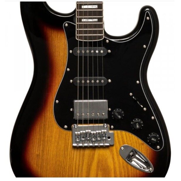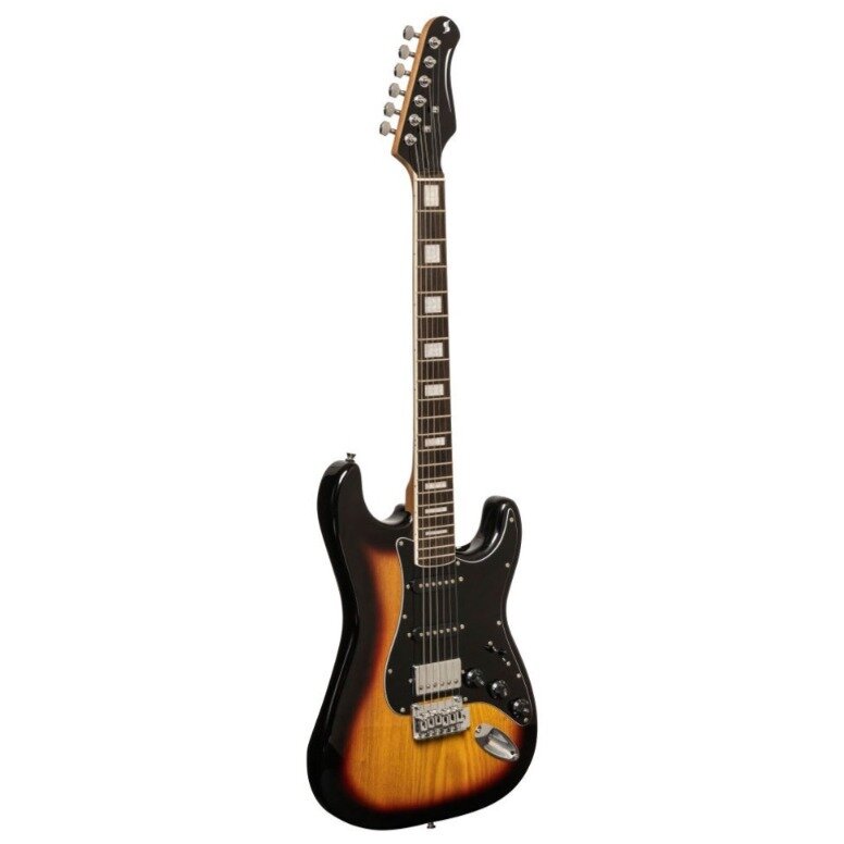 STAGG SES-60 SNB - электрогитара, 21 лад, корпус: ольха, гриф: морёный клён, на болтах, накладка: палисандр, звукосниматели: HSS, регулировки: 1х громкость с push-pull, 2х тон, 5-ти позиционный переключатель, цвет: санбёрст