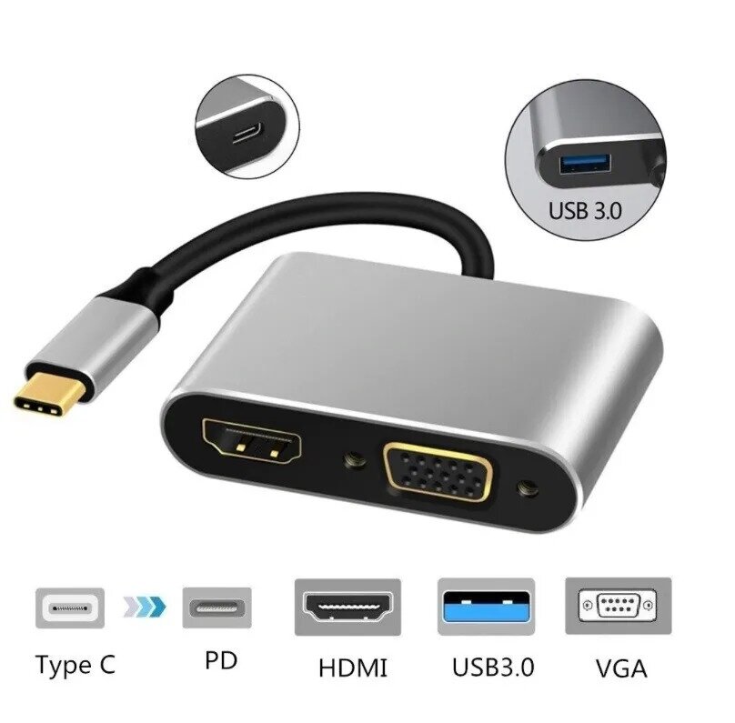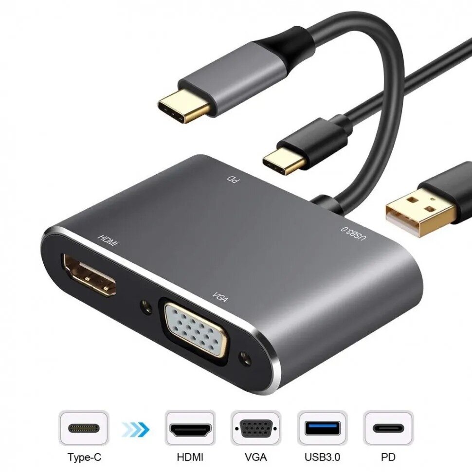 Купить Хаб/концентратор hub Type-c - HDMI (4K) + VGA + USB-C (PD) + USB 3.0