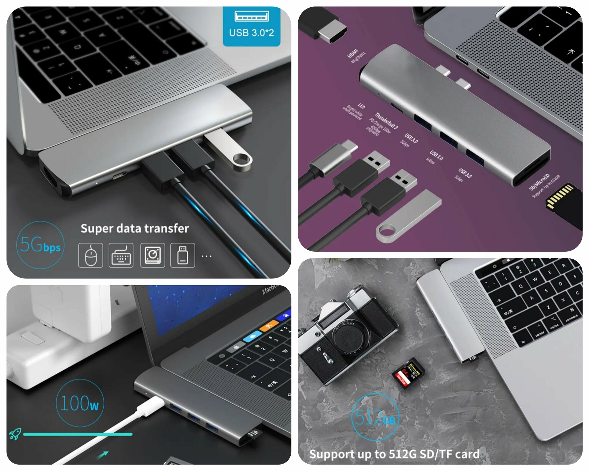 USB-концентратор Type-C Хаб Hub HB23 Easy view HDMI + USB3.0 + USB2.0 + RJ45 + PD