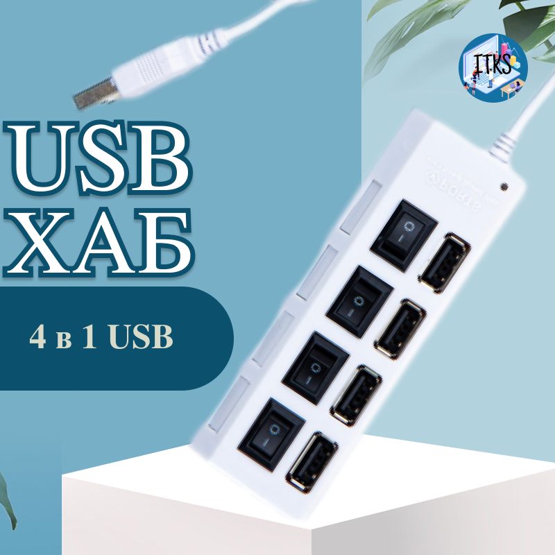 Usb Hub, USB-концентратор USB 2.0 на 4 Порта, HUB разветвитесь с выключателями, USB-ХАБ для периферийных устройств белый интересное: