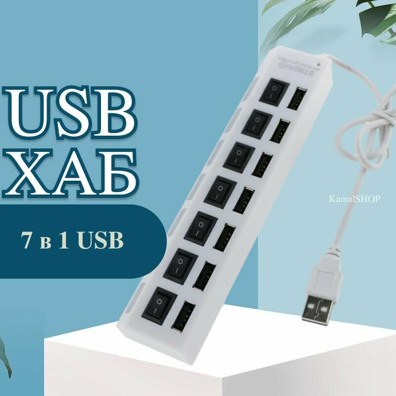 Usb Hub, USB-концентратор USB 2.0 на 7 Порта, HUB разветвитесь с выключателями, USB-ХАБ для периферийных устройств белый интересное: