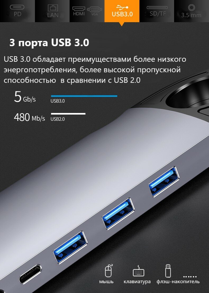 | Особенности | USB Type-C, активный, кардридер |