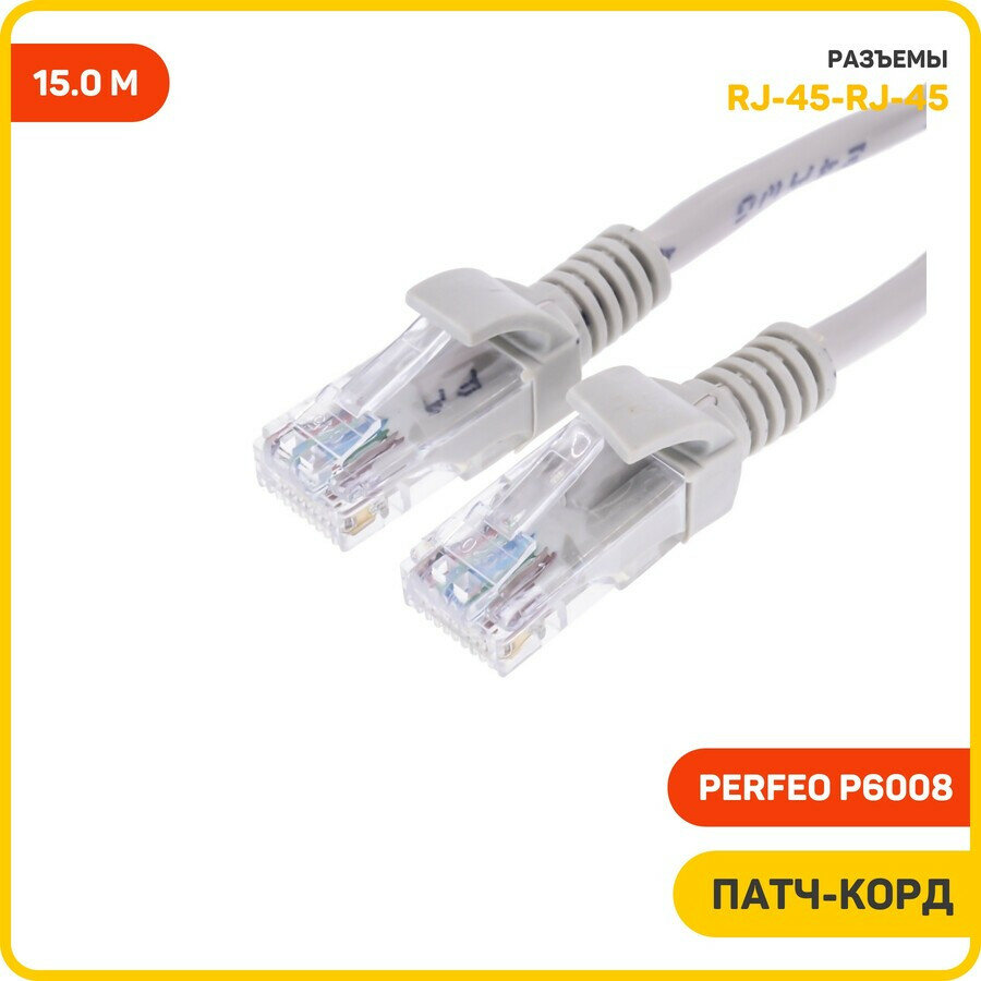 Купить Патчкорд PERFEO UTP кат.5е RJ-45 вилка - RJ-45 вилка, длина 15м. (P6008)