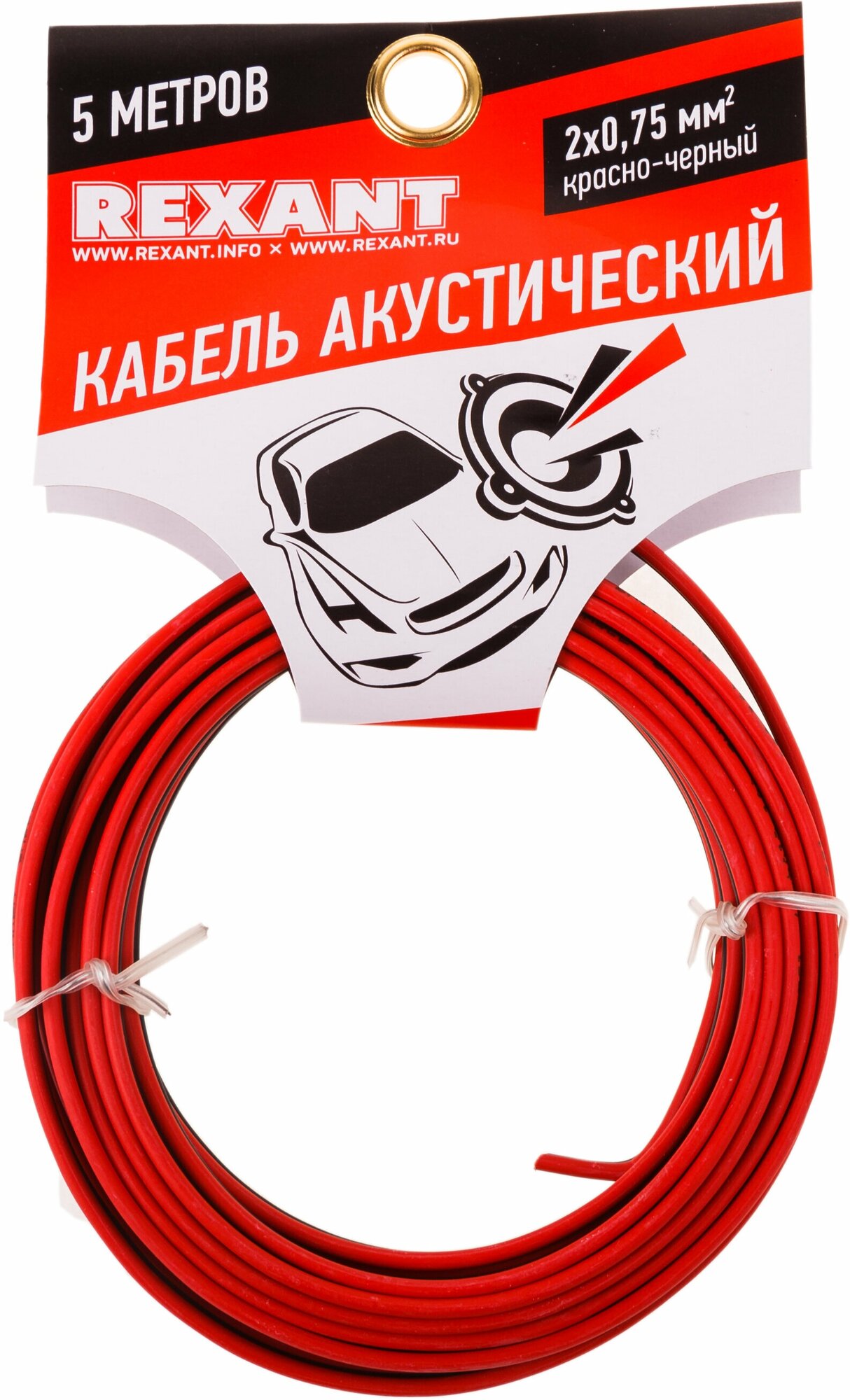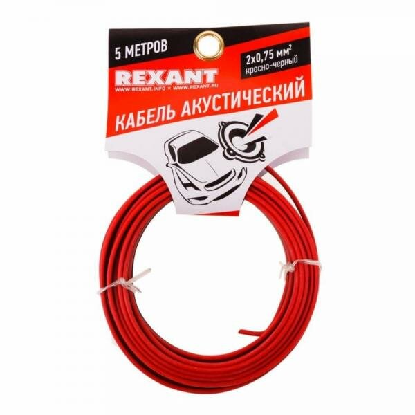 Кабель акустический Rexant, швпм 2х0.75 мм², красно-черный (5 м) {01-6104-3-05} интересное: