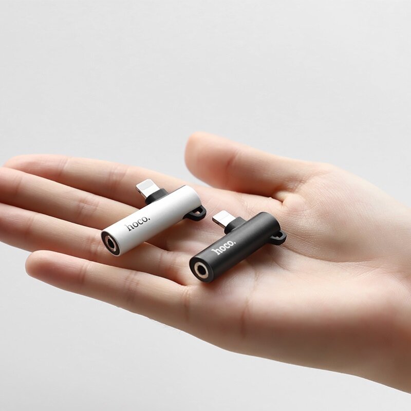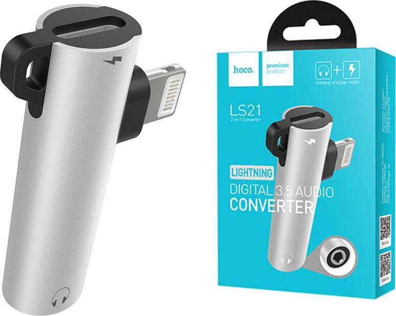 Купить Переходник Lightning (m) - AUX 3.5мм (f)+Lightning (f) Hoco LS21 - Серебристый