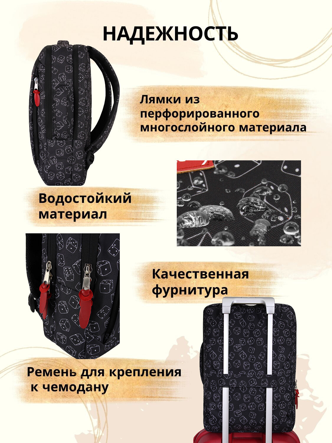 | Особенности | внешний карман, возможность крепления на тележку, защита от воды, карман для телефона, отделение-органайзер |