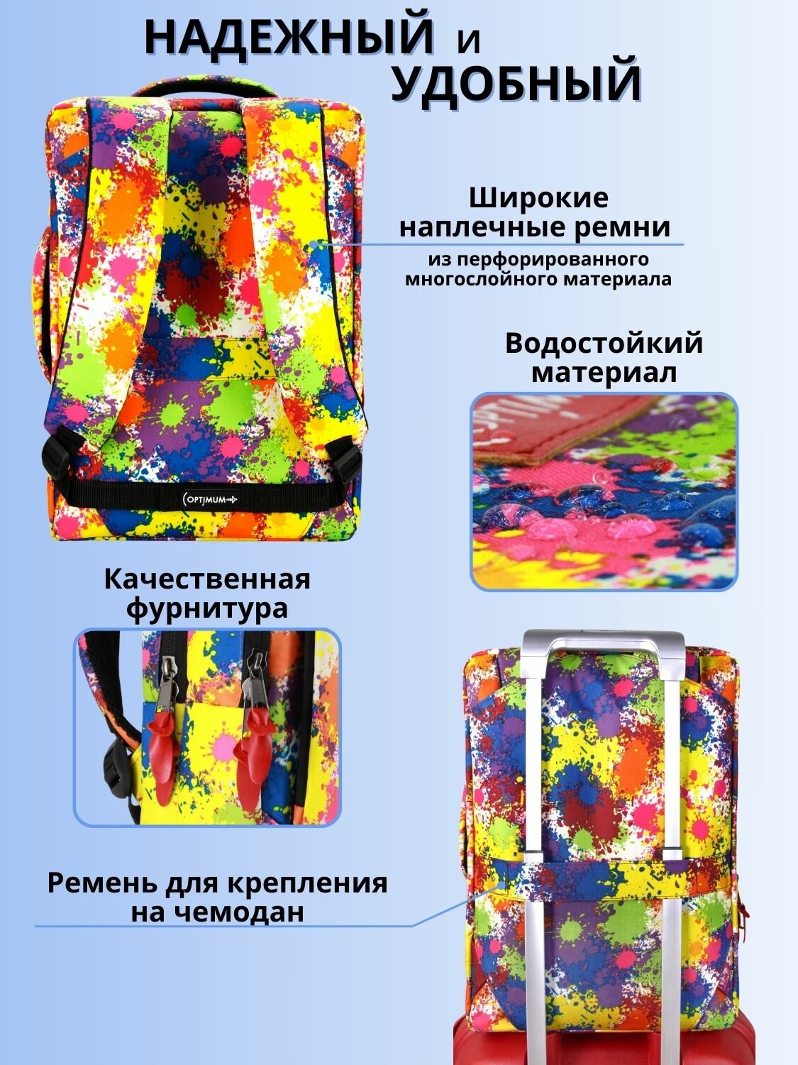 | Особенности | внешний карман, возможность крепления на тележку, защита от воды, карман для телефона, отделение-органайзер |