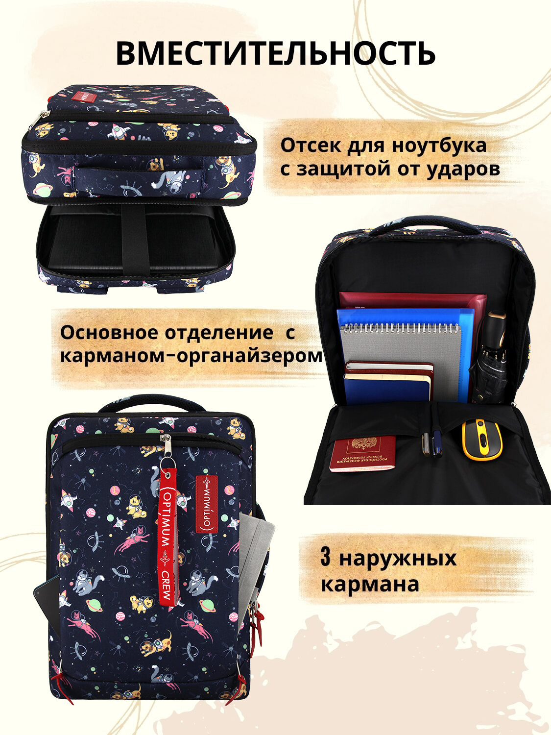 Купить Рюкзак для ноутбука 15.6 17 17.3 дюймов мужской женский, космонавты