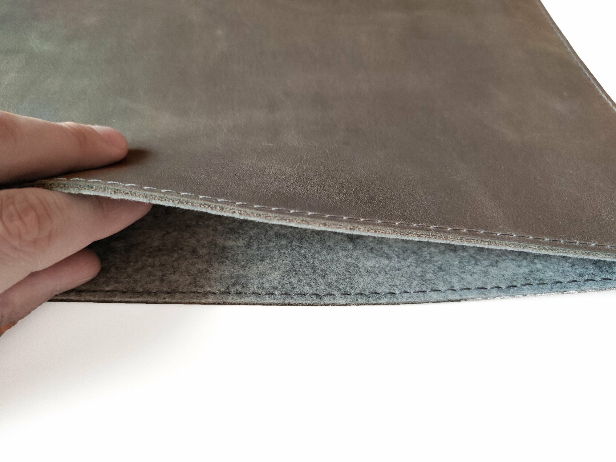 Кожаный чехол для Macbook Pro 14. Горизонтальный. Крафт. Серый Shark