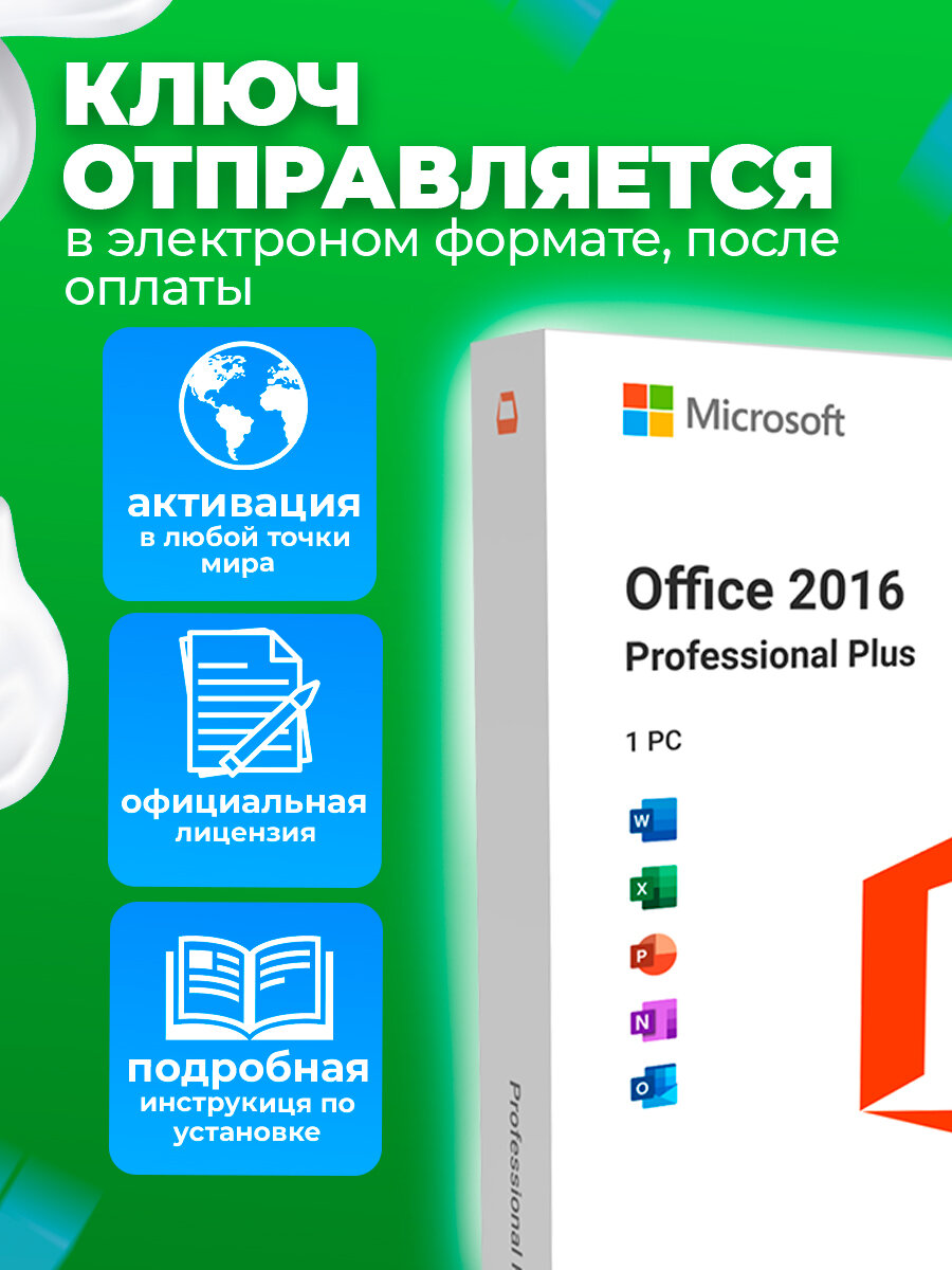 Microsoft Office 2016 Pro Plus - ключ активации, бессрочная лицензия на 1 устройство, онлайн активация