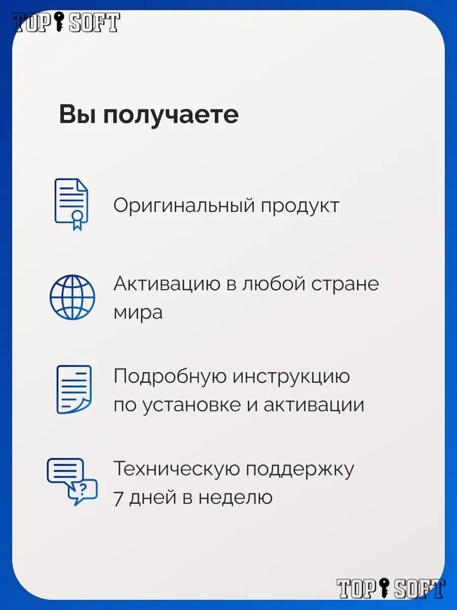 | Состав пакета | Ключ активации, ссылка на дистрибутив, инструкция по установке и активации |