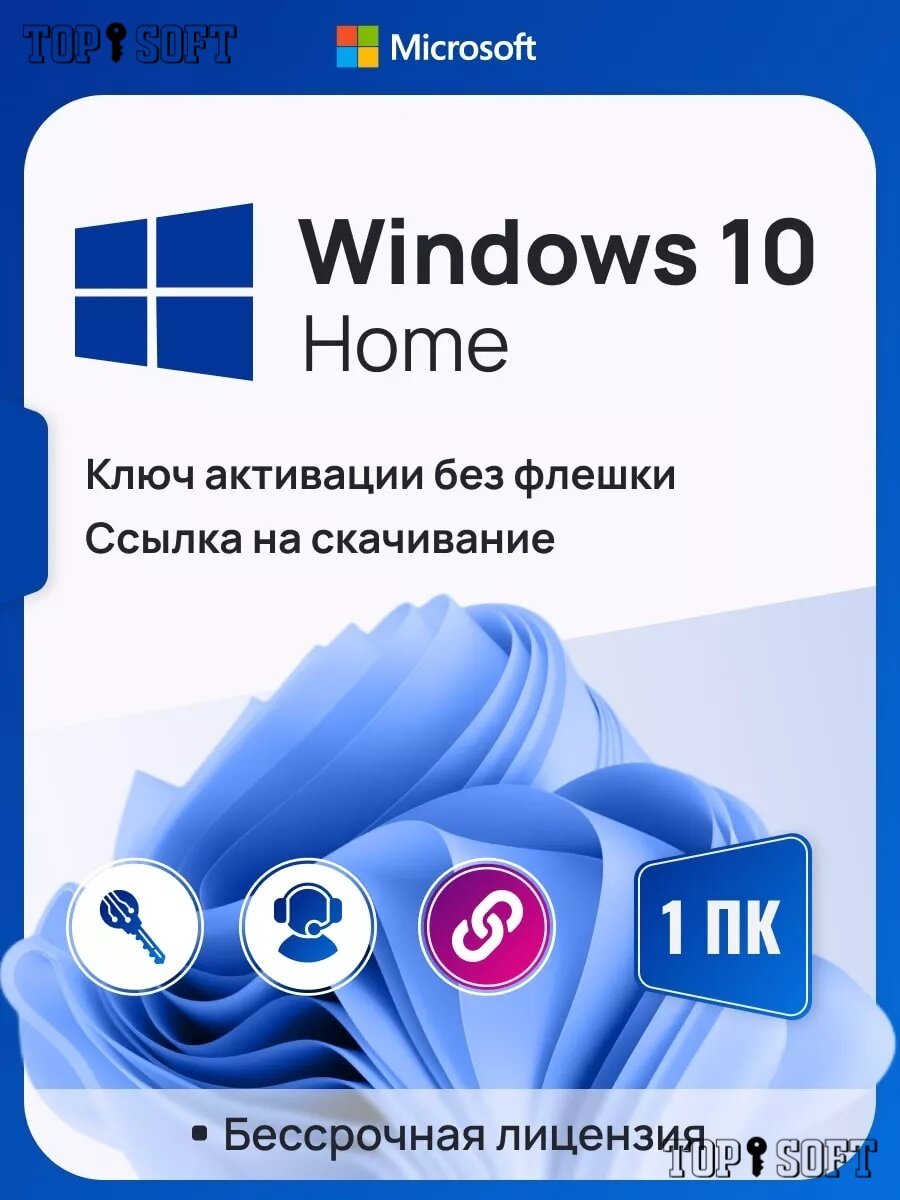 Ключ активации Windows 10 Home ключ Microsoft (Русский язык, Бессрочная лицензия, Онлайн активация)