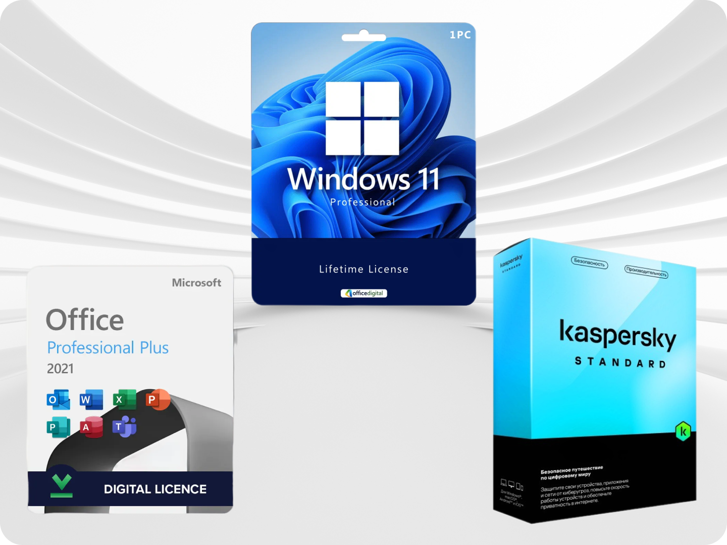 | Состав пакета | WINDOWS 11 PRO (бессрочная лицензия) OFFICE 2021 PRO PLUS (бессрочная лицензия) KASPERSKY (1 устройство на 1 год) |