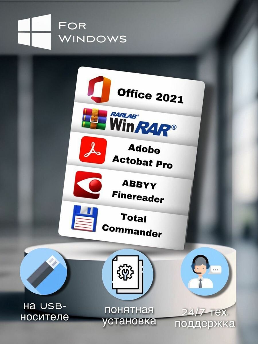 | Состав пакета | office 2021, WinRAR, ABBYY FineReader, Total Commander, Adobe Acrobat Pro DC |