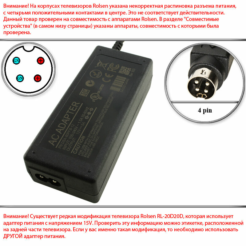 Ниже Вы можете прочитать отзывы на Адаптер (блок) питания 12V, 5A, 60W, 4-pin VN (HASU12FB), для телевизора Rolsen; POS терминала Firich и др., ознакомится с подробными характеристиками, посмотреть интересные обзоры и фотографии на Адаптер (блок) питания 12V, 5A, 60W, 4-pin VN (HASU12FB), для телевизора Rolsen; POS терминала Firich и др..