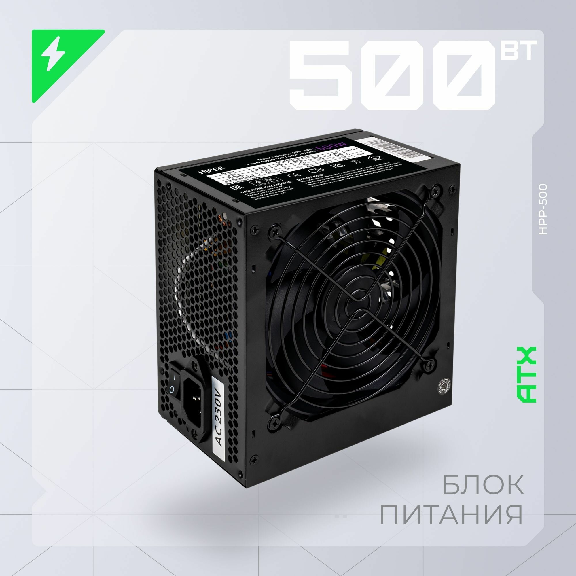 Блок питания Hiper ATX мощность 500Вт HPP-500, цвет черный, ATX12V 2.3