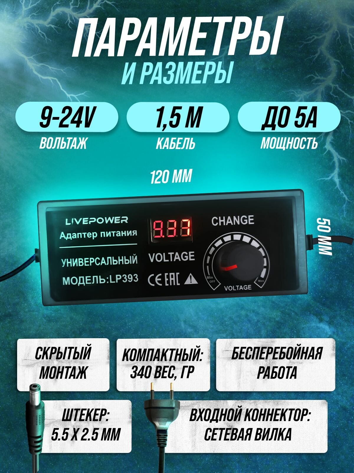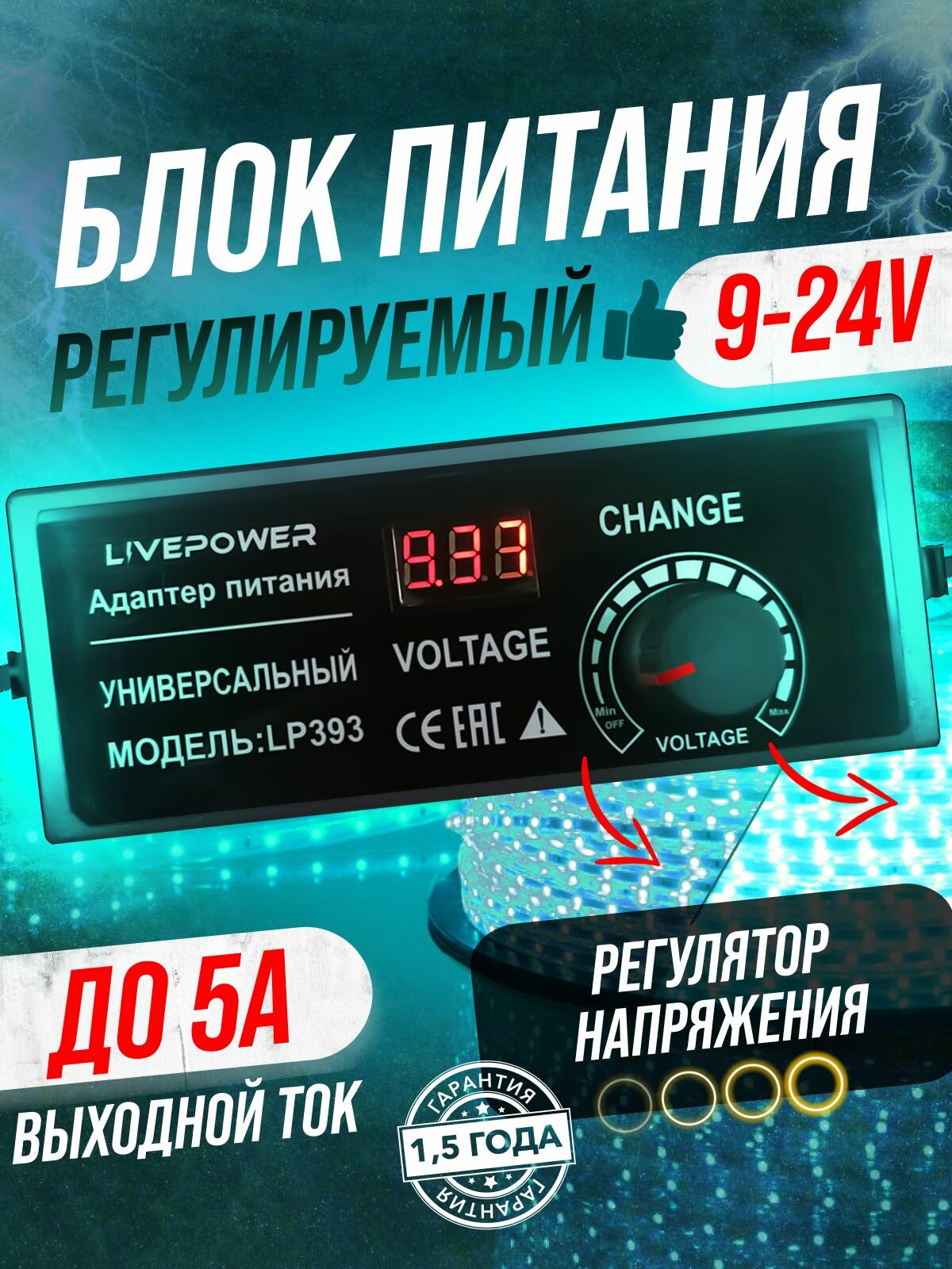 Блок питания универсальный LP393 9-24V 5A LCD+регулировка (5,5*2,5) интересное:
