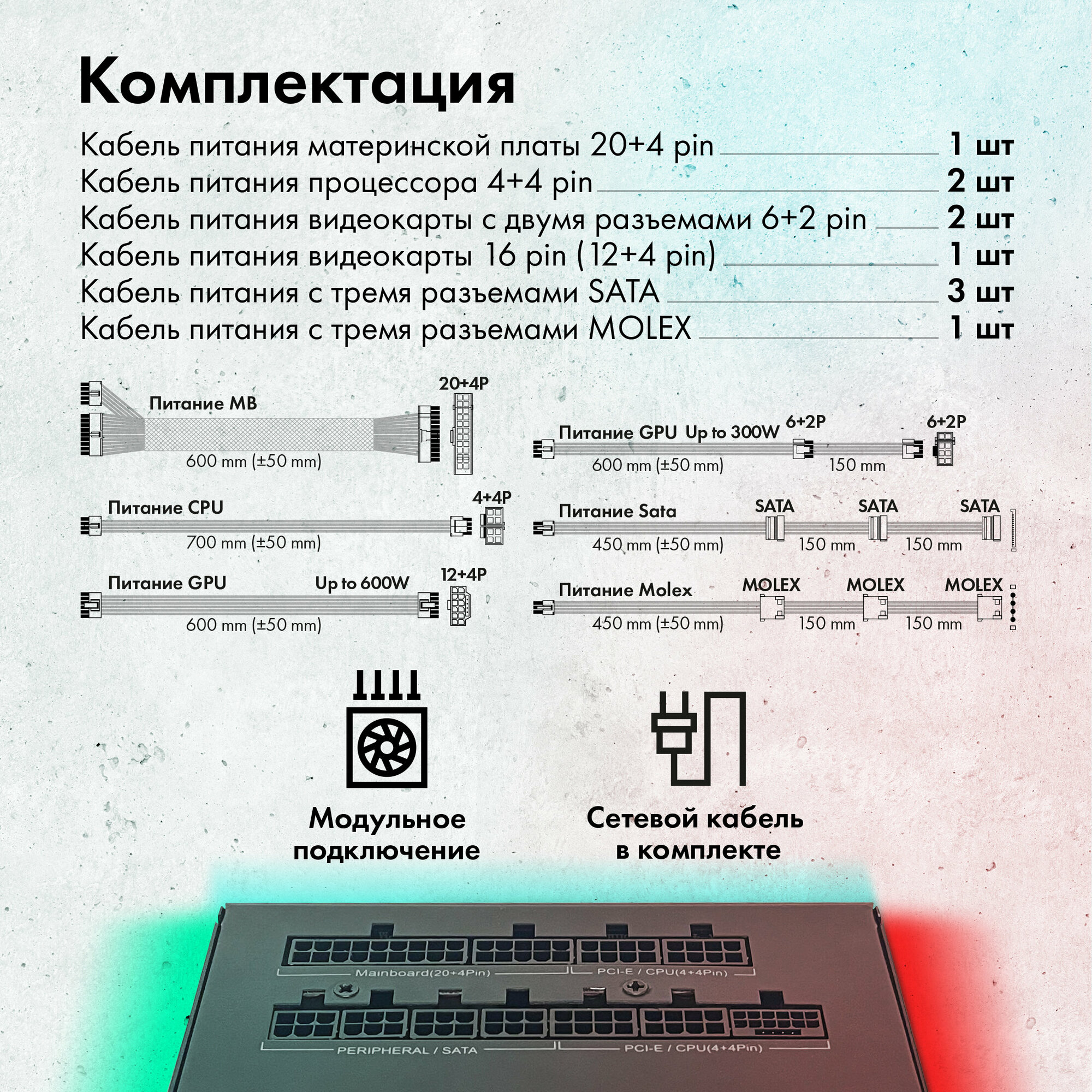 Блок питания GMNG ATX 1000W GG-PS1000M 80+ gold (20+4pin) APFC 120mm fan 9xSATA Cab Manag RTL интересное: