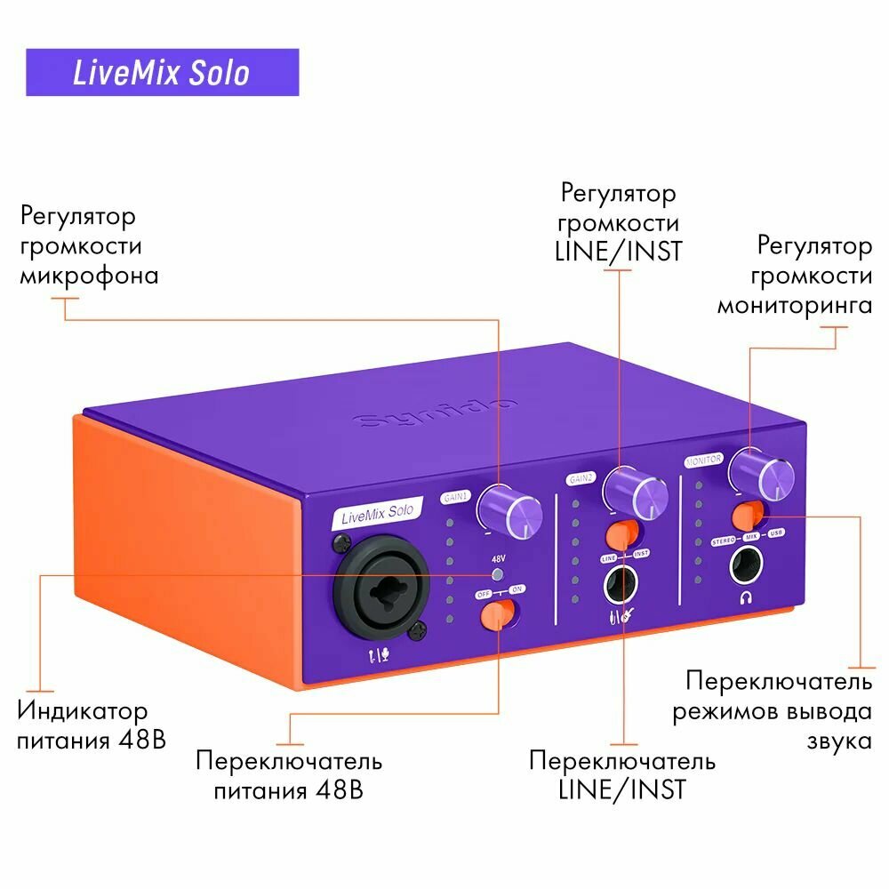 Внешняя звуковая карта Synido LiveMix Solo, фиолетовый интересное:
