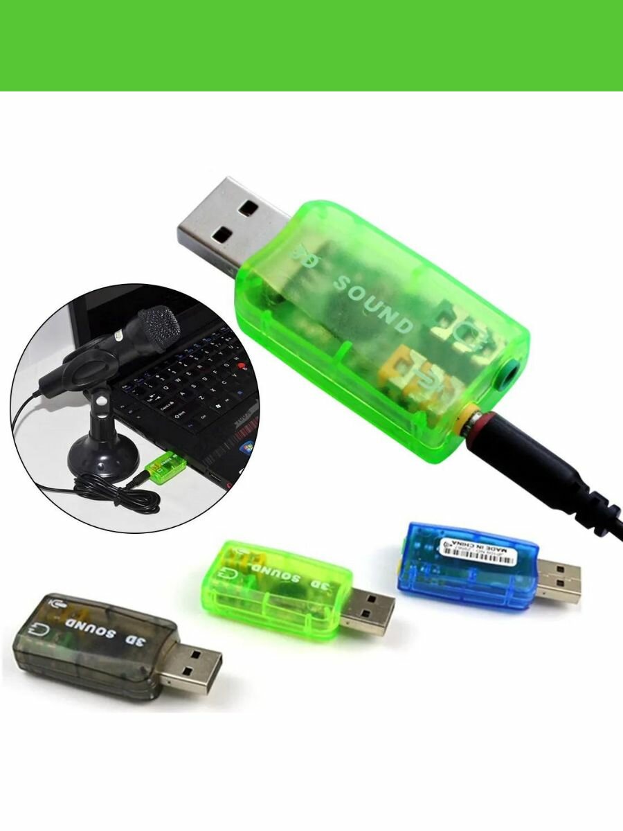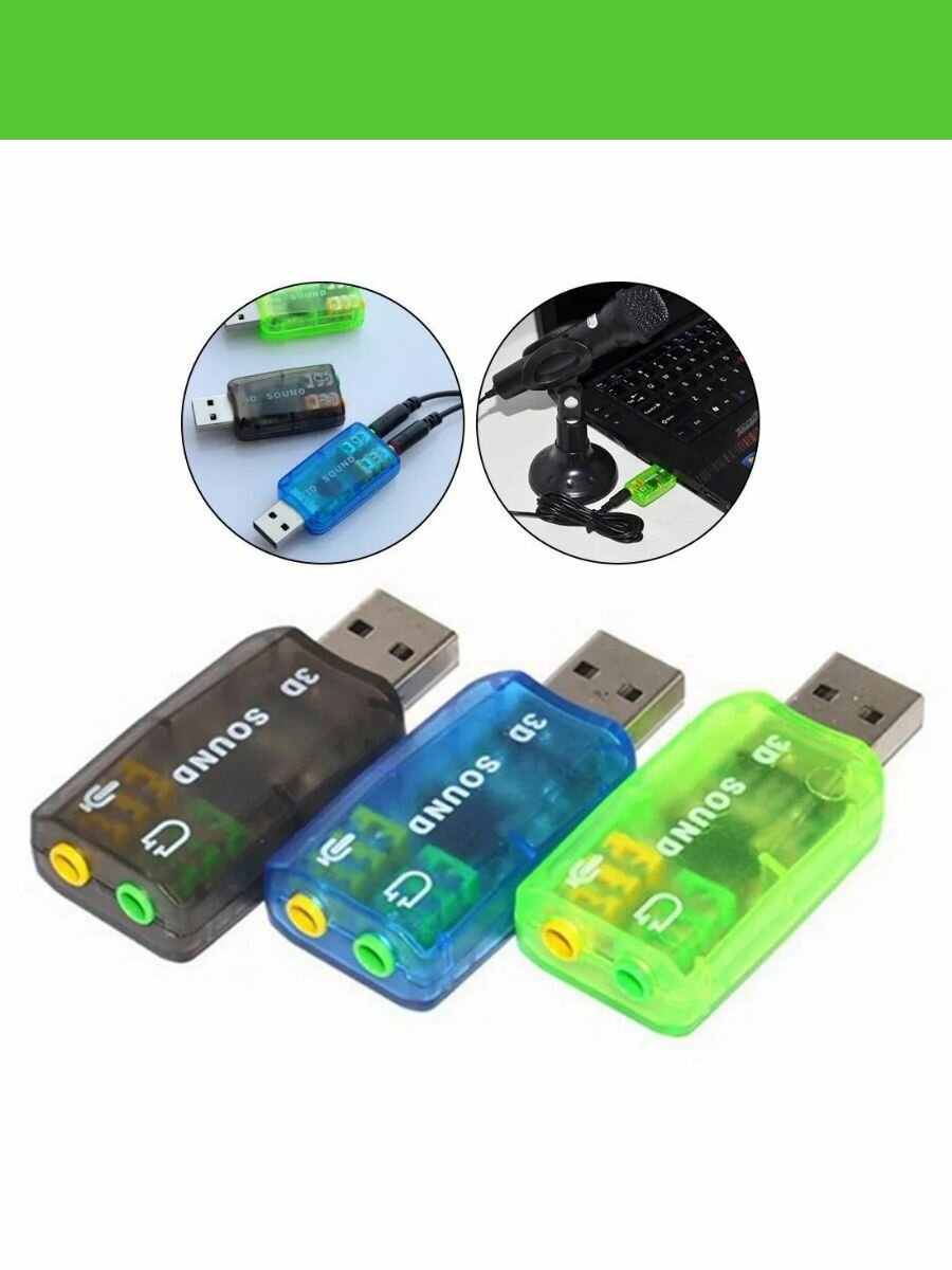Внешняя звуковая карта USB2.0, адаптер звука для ПК зеленая интересное: