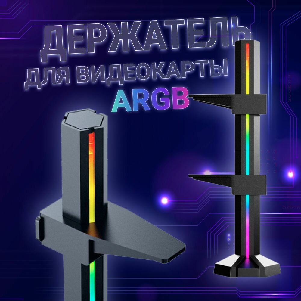 Кронштейн держатель для видеокарты с rgb подсветкой, вертикальный, стойка 235 мм, черный интересное: