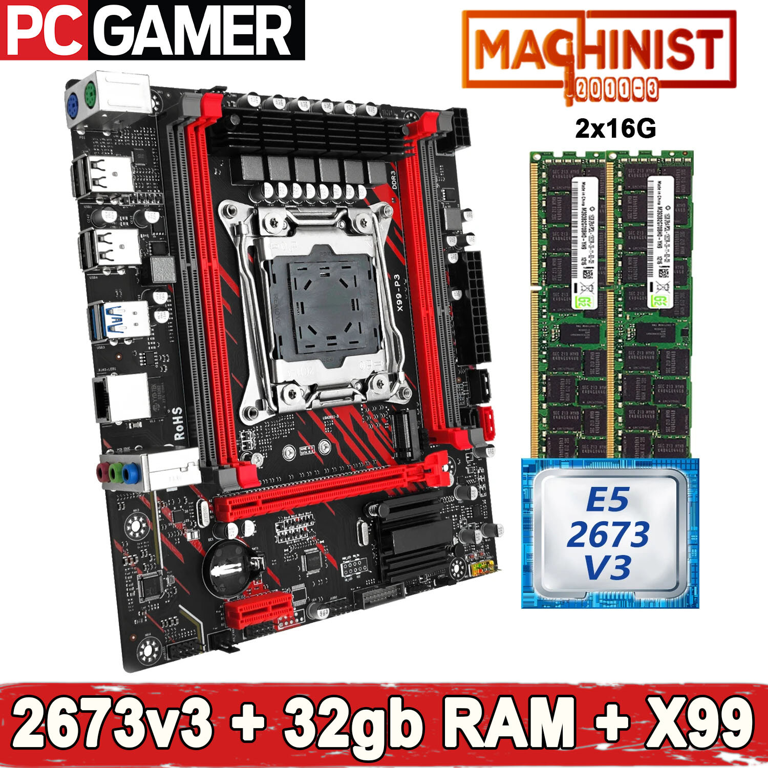 Купить Комплект материнская плата Machinist X99 P3 + Xeon 2673V3 + 32GB DDR3 ECC REG