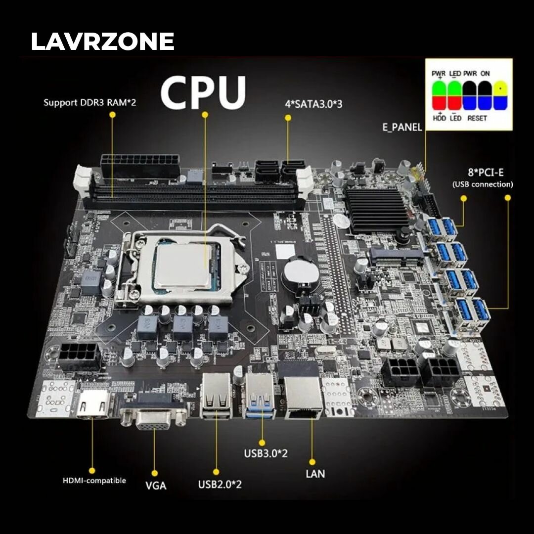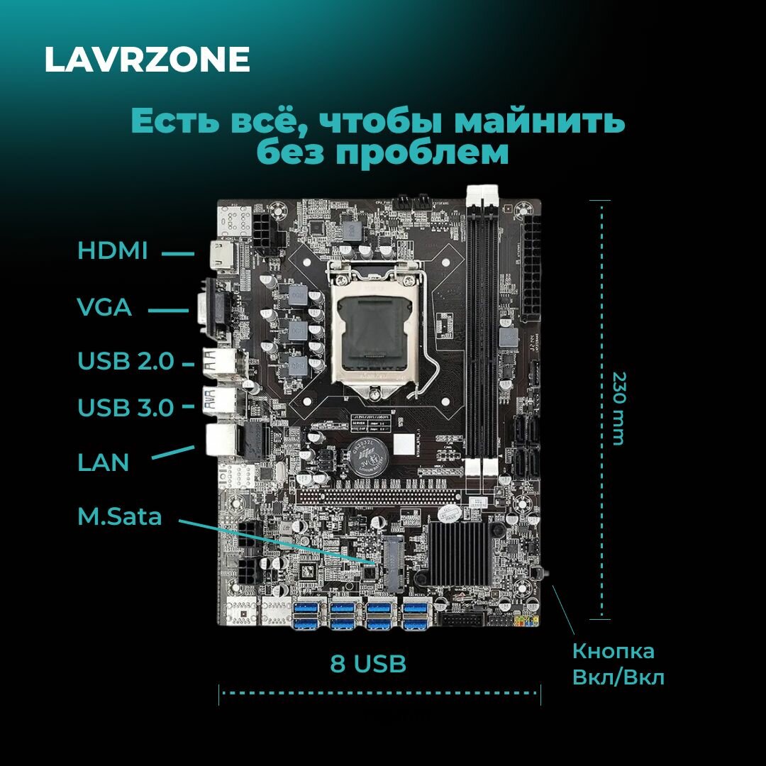 Купить Материнская плата майнинг B75 8USB BTC 8XUSB+процессор+ "Материнская плата для майнинга"
