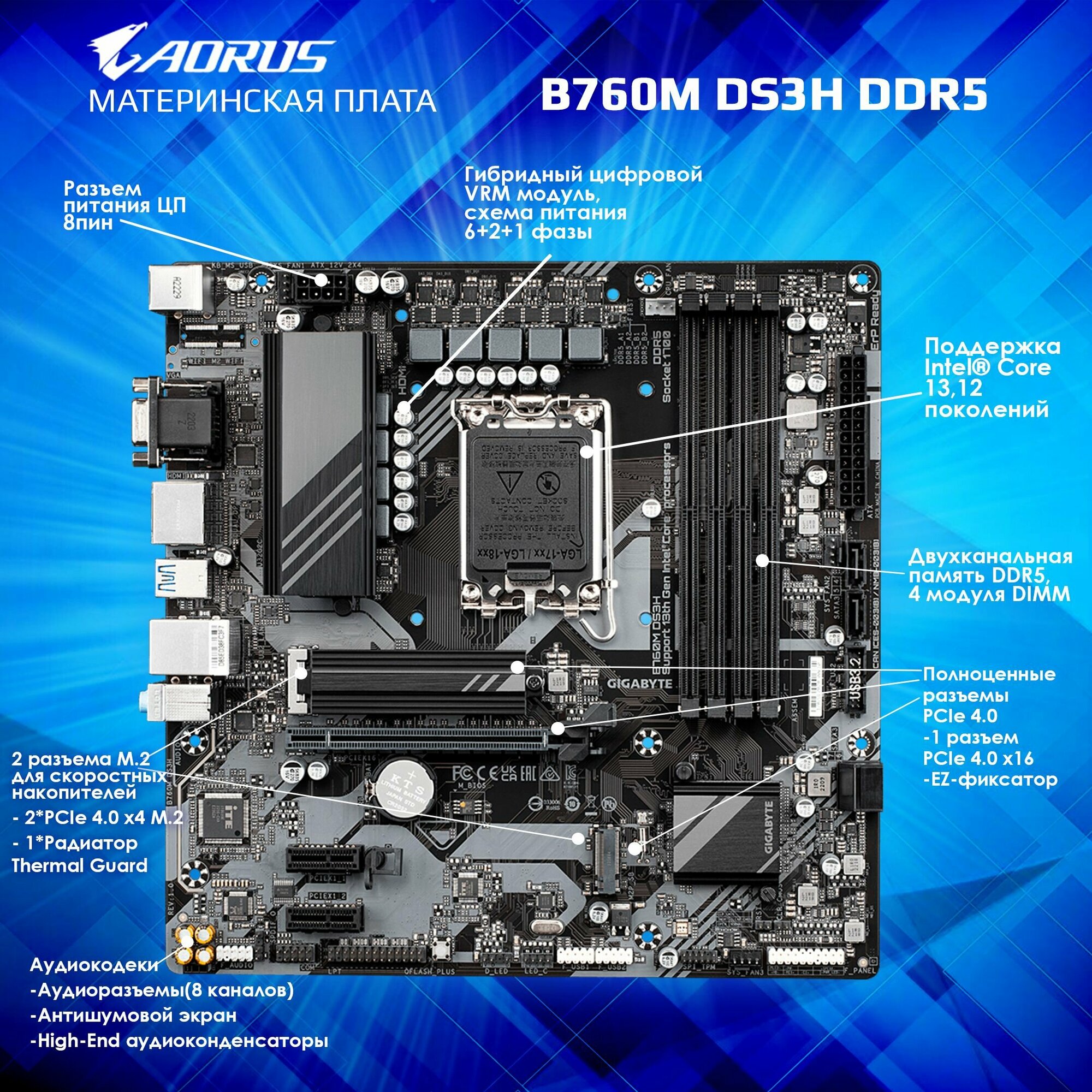 Материнская плата Gigabyte B760M DS3H (LGA1700, mATX)
