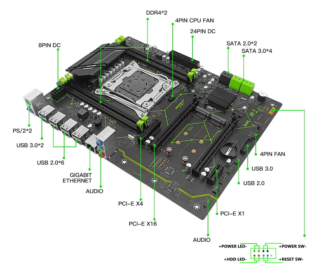 Комплект для сборки MACHINIST X99-MR9A с процессором XEON 2666v3 + ОЗУ 16 (2x8) + SSD 512Гб (M2) и кулер интересное: