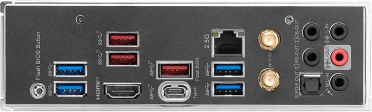 | Разъемы на задней панели | 2 x SMA (для антенны Wi-Fi), 2 x USB 3.2 Gen1 Type-A, 4 x USB 2.0 Type-A, DisplayPort, HDMI, LAN RJ-45, PS/2 (клавиатура/мышь), USB 3.2 Gen2 Type-A, USB 3.2 Gen2x2 Type-C |