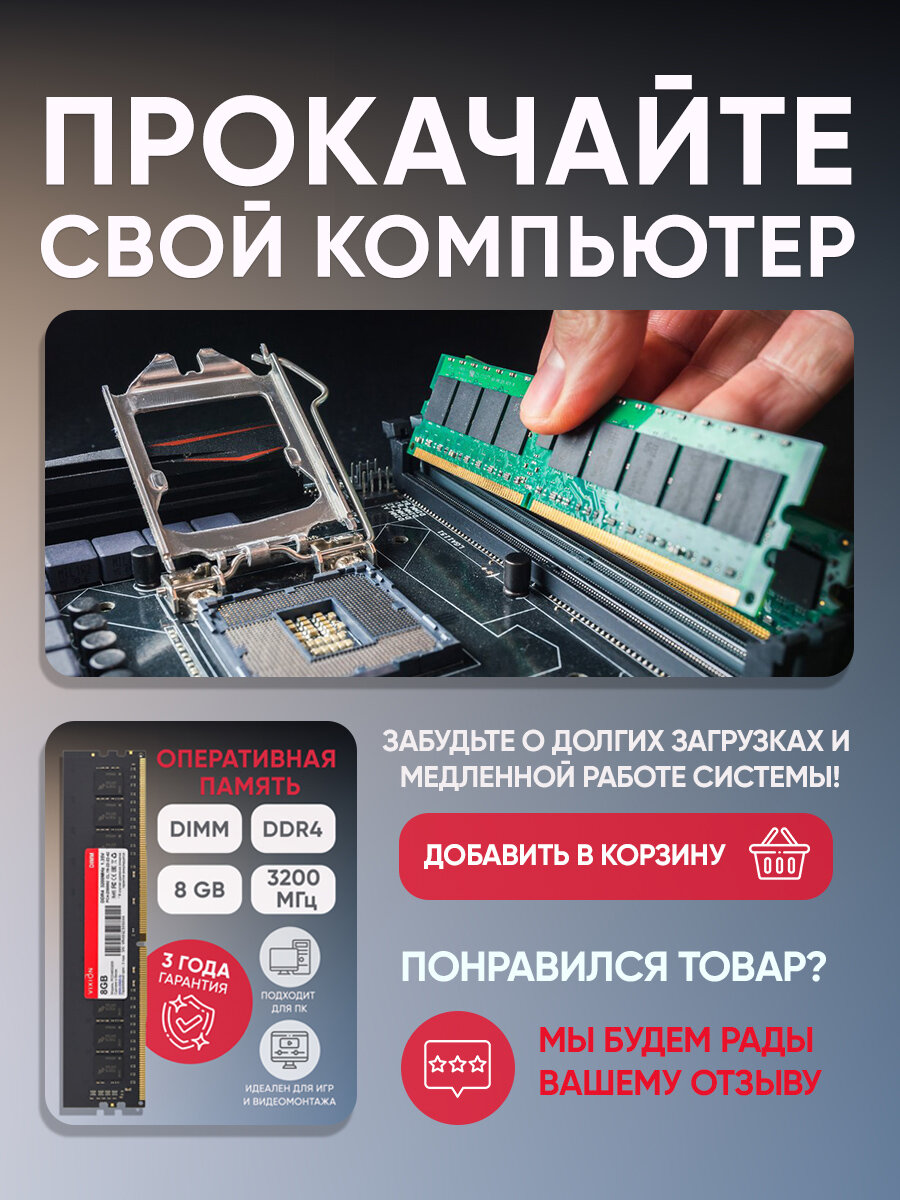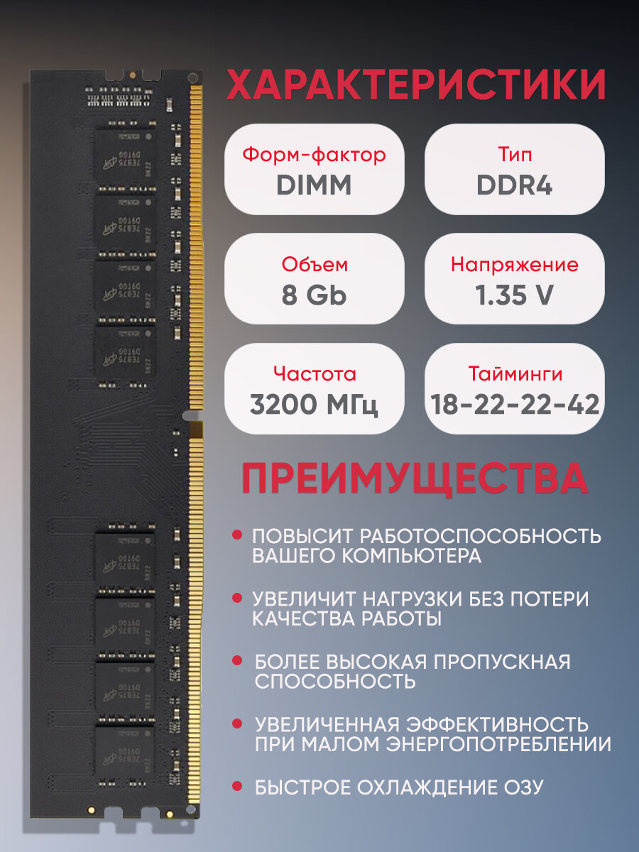 Оперативная память 8 ГБ DIMM DDR4 3200 МГц 18-22-22-42 1,35V интересное: