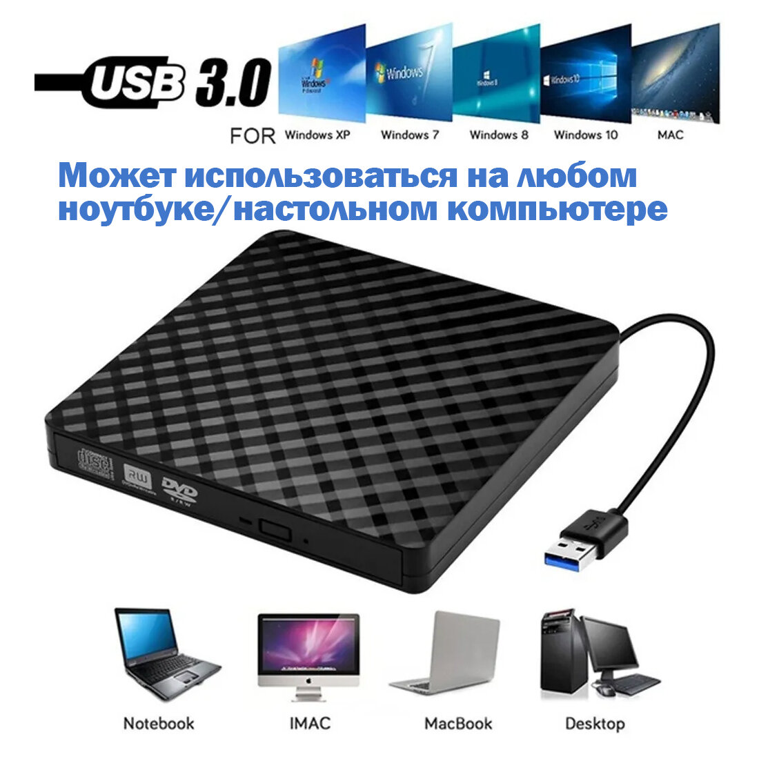 Купить Внешний CD DVD дисковод с чтением и записью картридер для Apple и Windows, оптический привод, USB 3.0