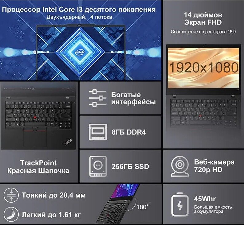 14" Ноутбук Lenovo Thinkpad L14 Intel Core i3 10110U Процессор Windows10 системы интересное:
