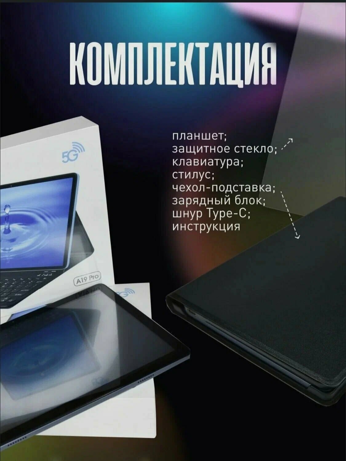 | Комплектация | Планшет, чехол, стилус, клавиатура, защитное стекло, зарядное устройство |