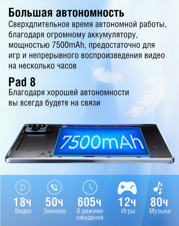 Планшет HOTWAV Pad 8, 10,4 дюйма, 2K, 8 + 256 ГБ, 13 МП, 7500 мАч, Серебристый интересное: