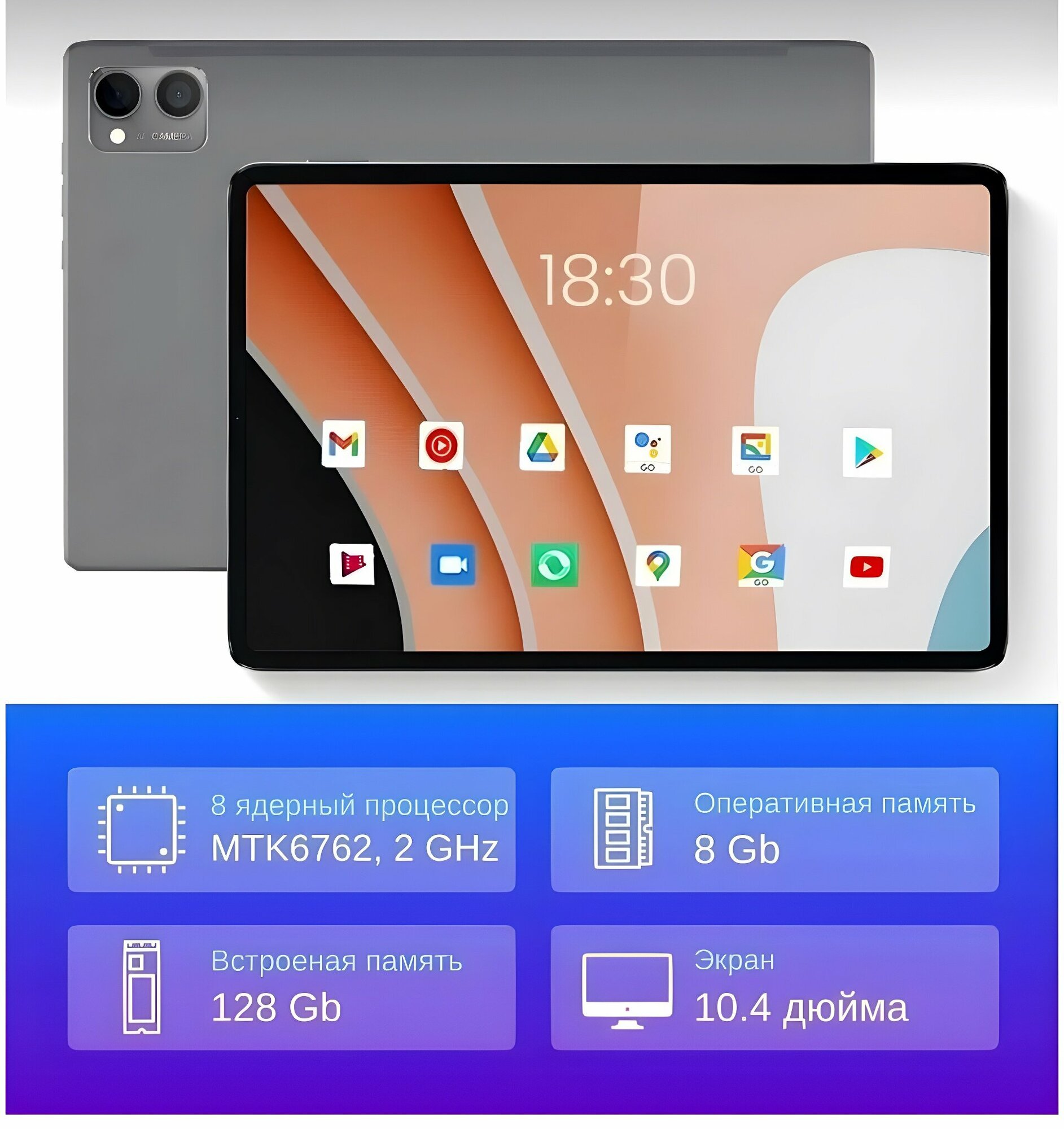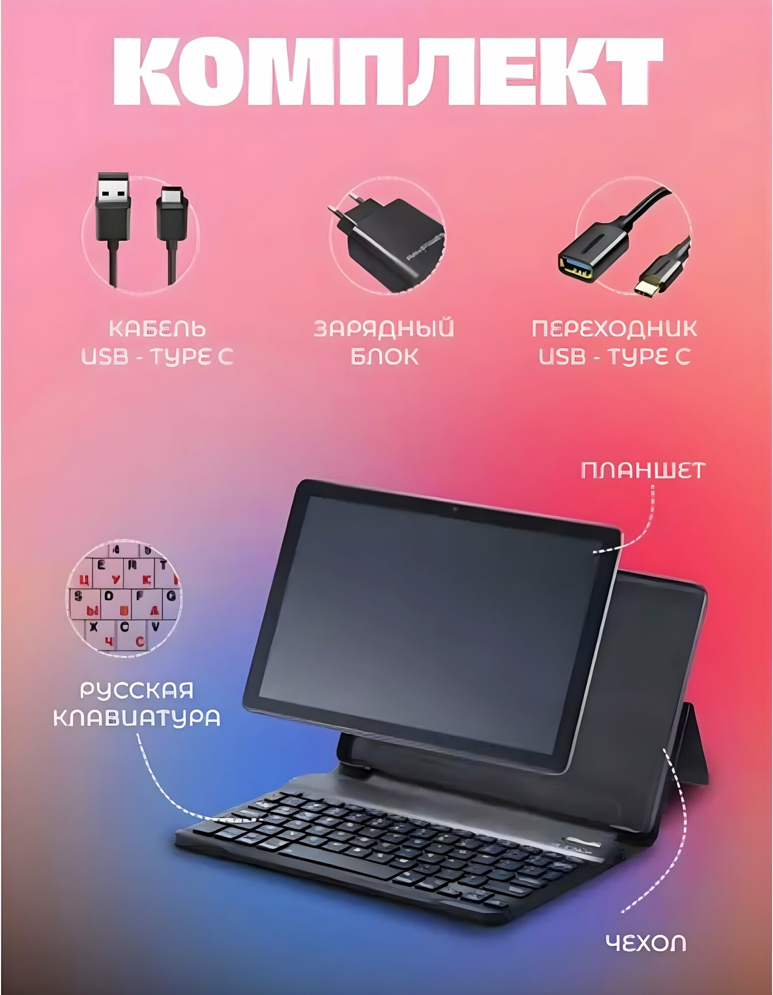 Мощный планшет с клавиатурой, чехлом / 10 ядер / 6 gb / 128, 10.1", 128GB, золотистый Android 12 интересное: