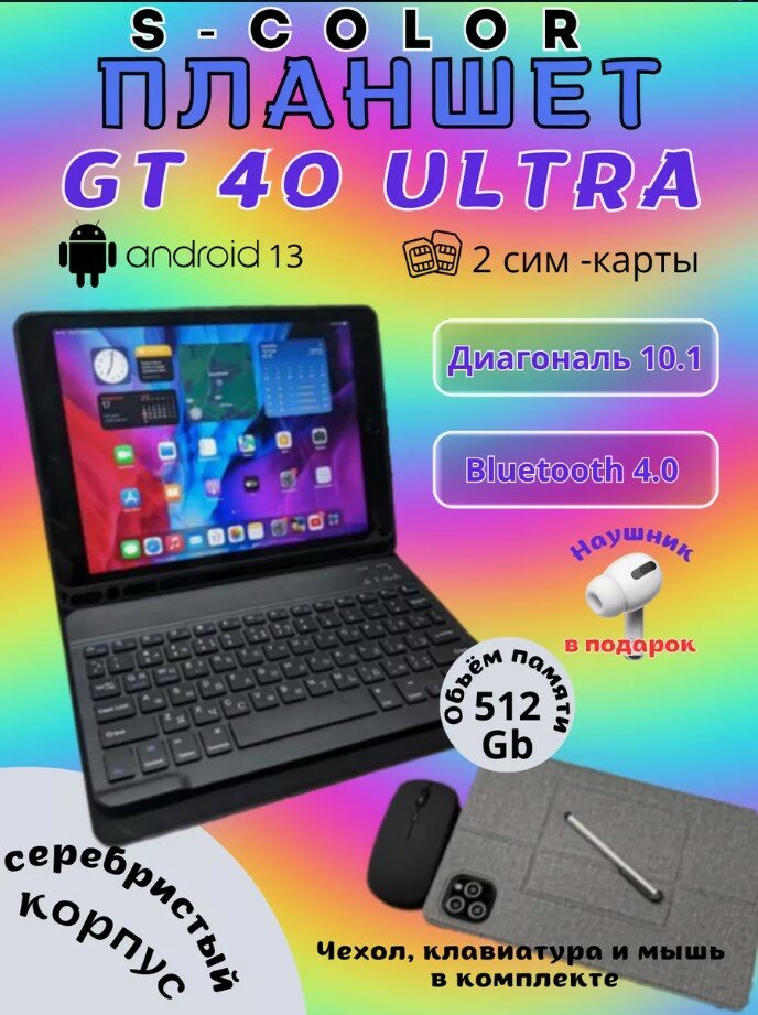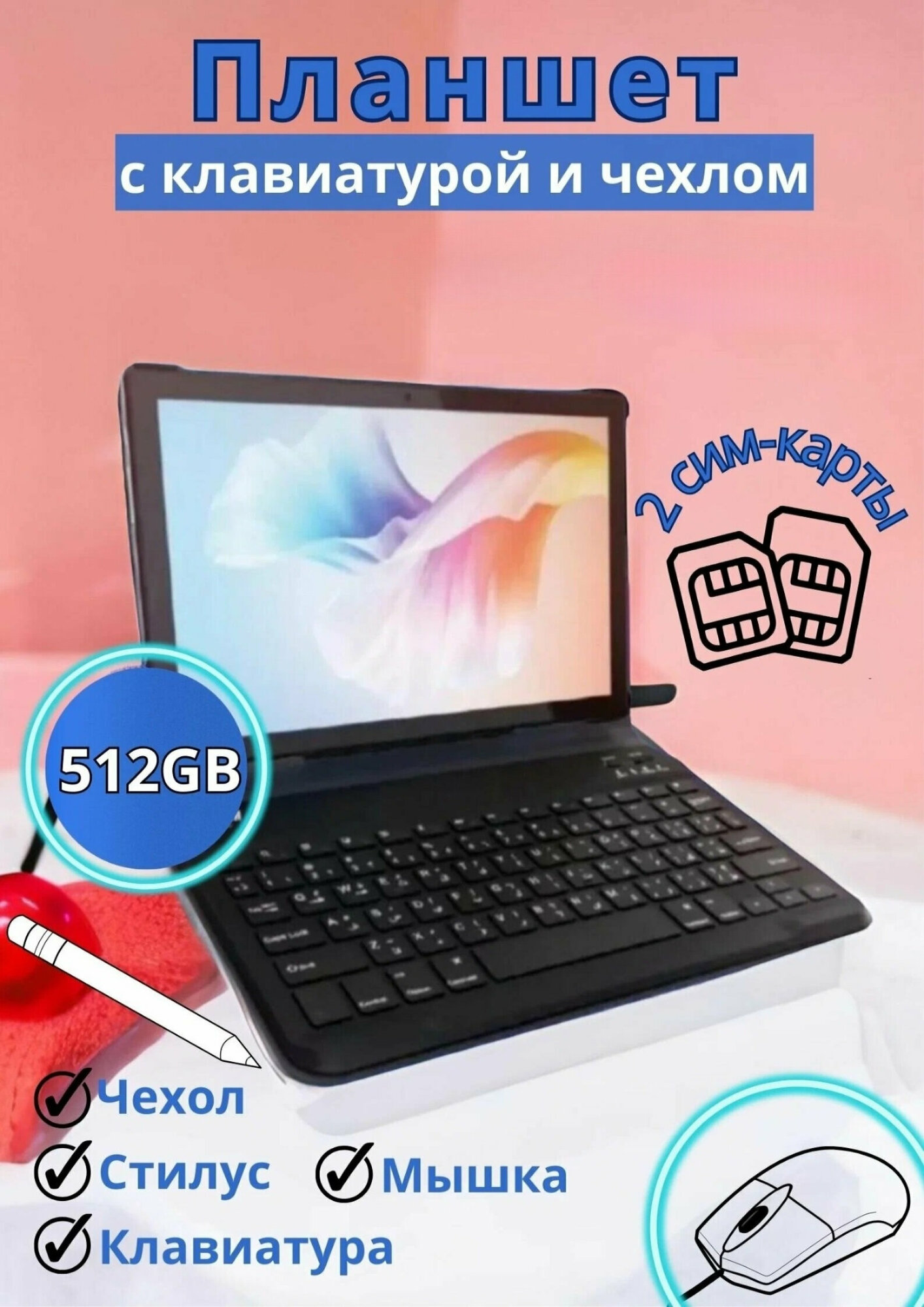 Планшет андроид, планшет с клавиатурой, планшет 10 дюймов, 512 гб, 16 гб оперативной памяти, 30Мп основная камера, серый интересное: