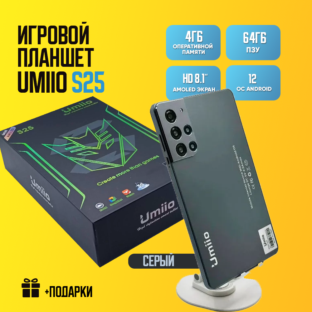 Детский планшет Umiio S25, 4/64 Gb, 8.1 дюйм, Android 12, серый