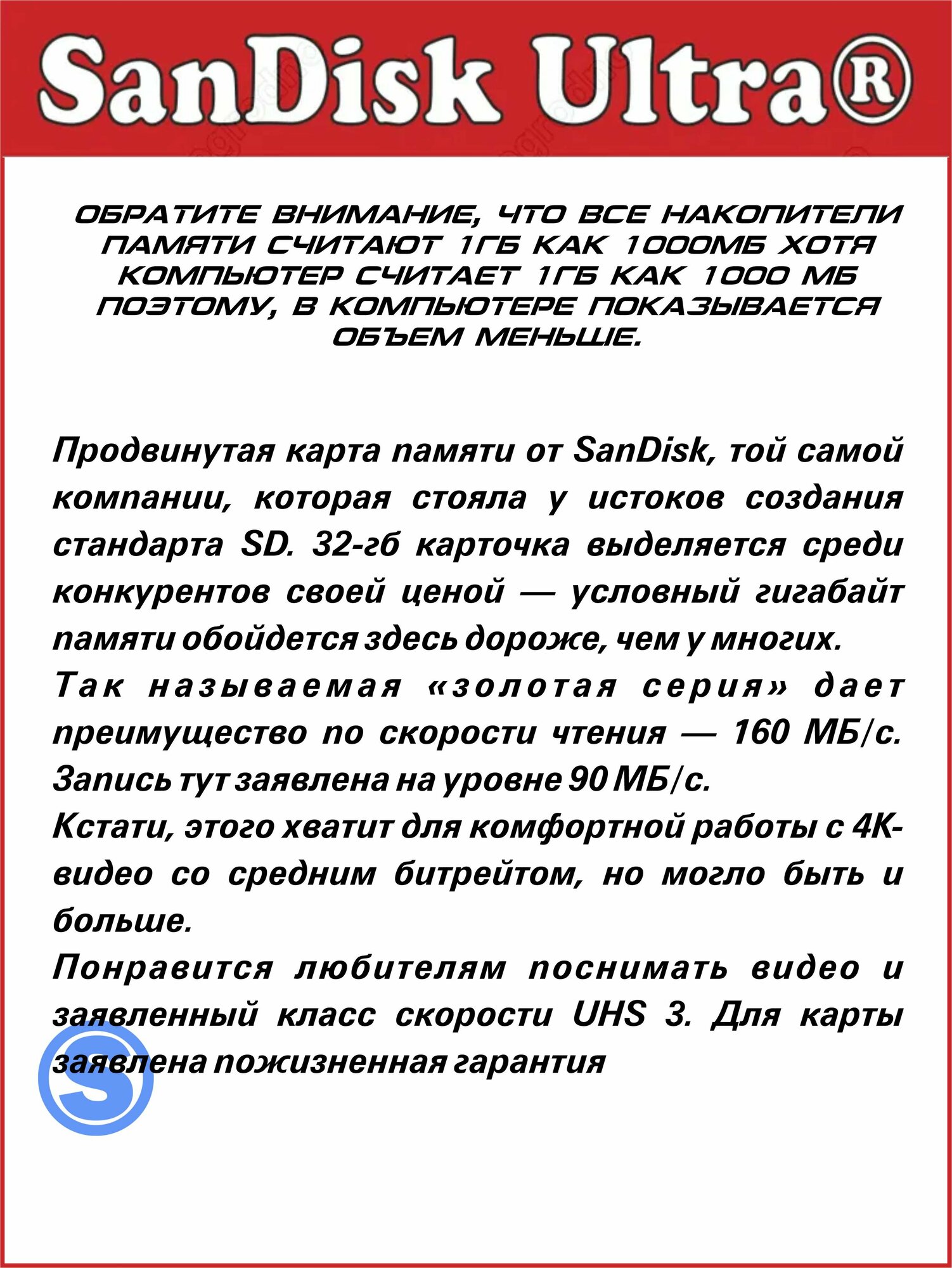 Карта памяти microSD 128Gb SanDisk Ultra интересное:
